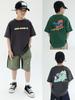 2024 Verão Novo Estilo Ocidental Infantil Casual Meia manga Top Boys Dinosaur Print T-shirt de manga curta Loose All-match