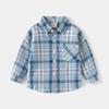 Dropshipping 2024 Novas Camisas de Meninos, Camisas de Manga Comprida Infantis, Camisas Xadrez de Gola Quadrada com Ombro Solto Estilo Coreano para Bebês