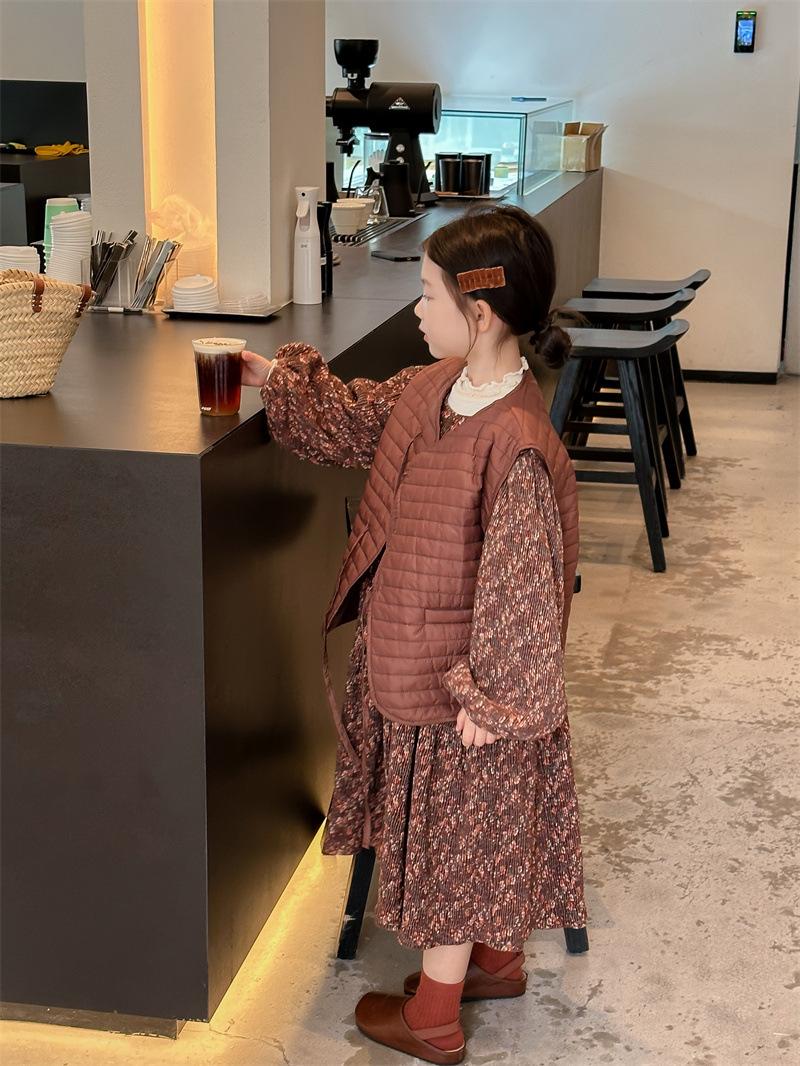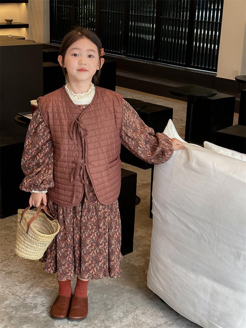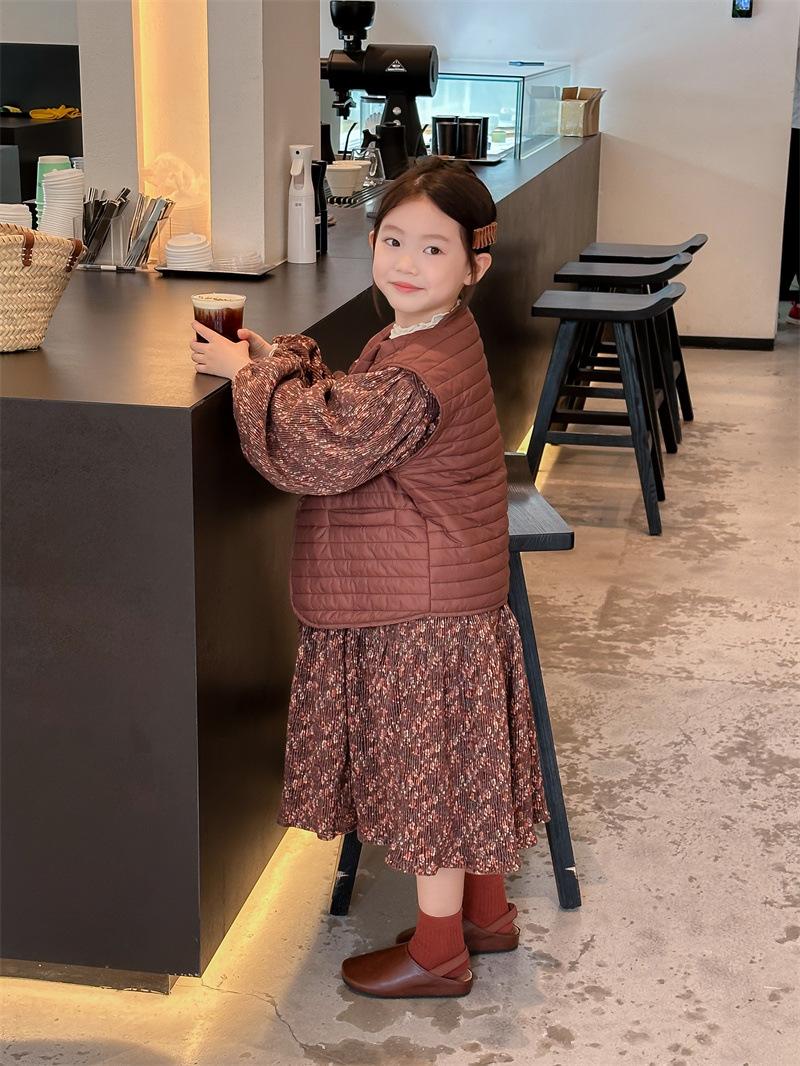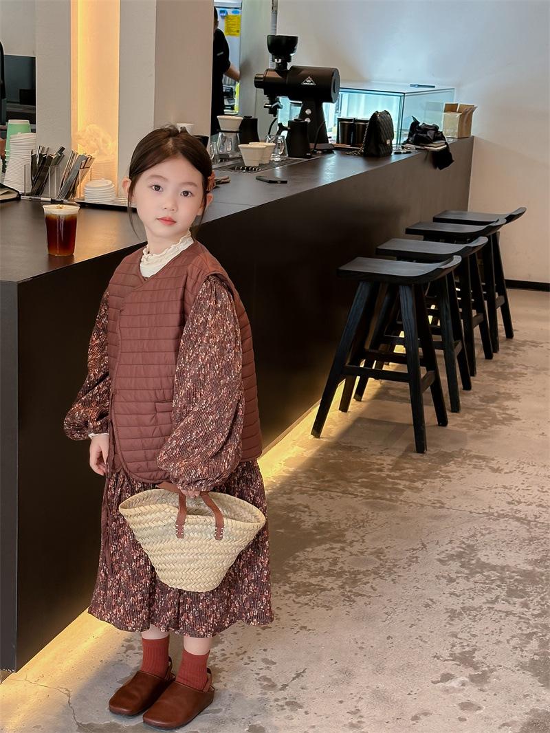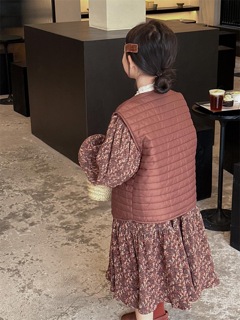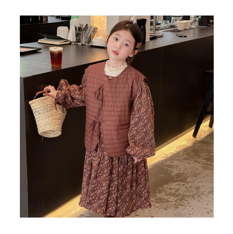 Colete das meninas roupas de outono 2023 novo estilo ocidental jaqueta acolchoada infantil outono moda colete de algodão leve da menina