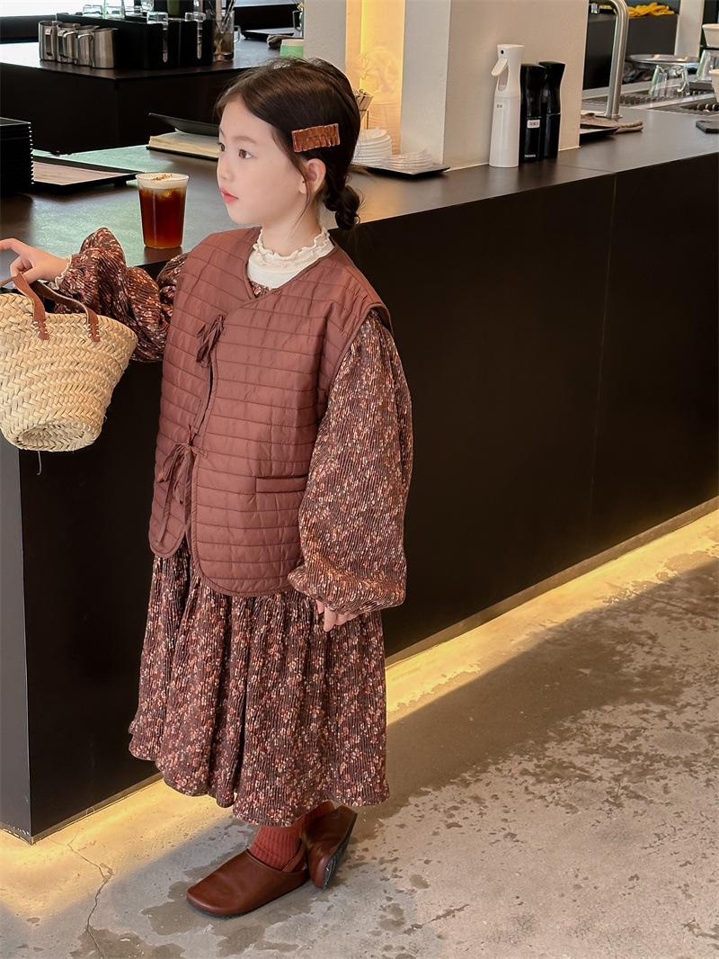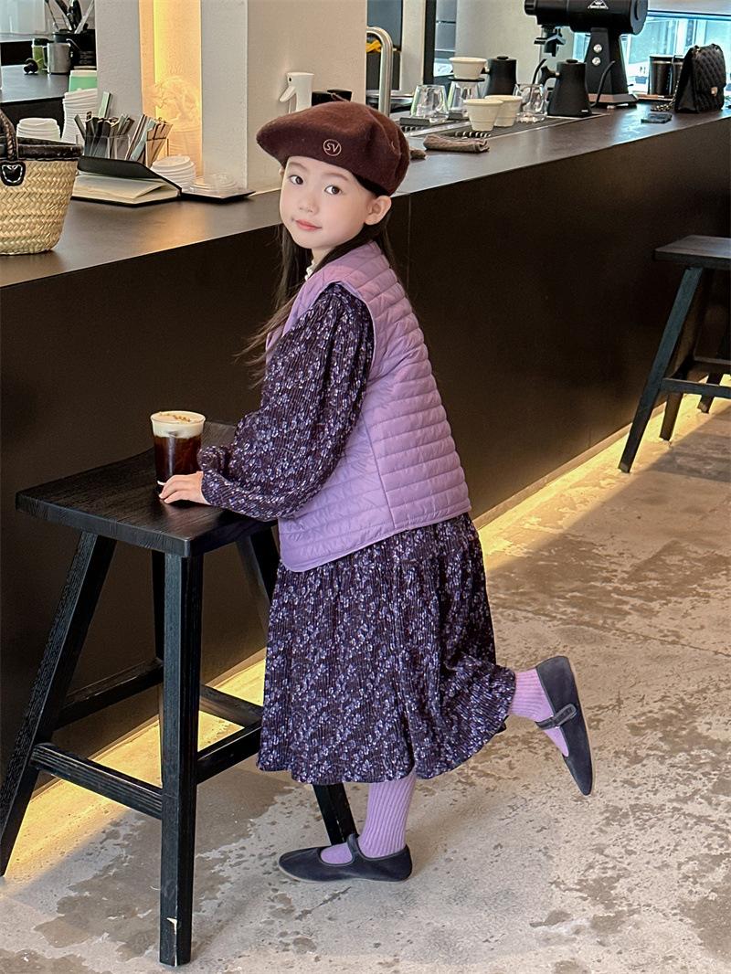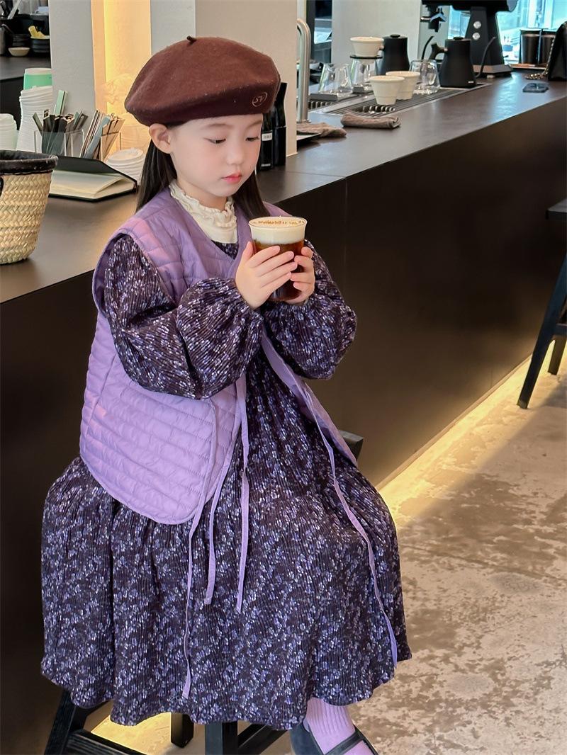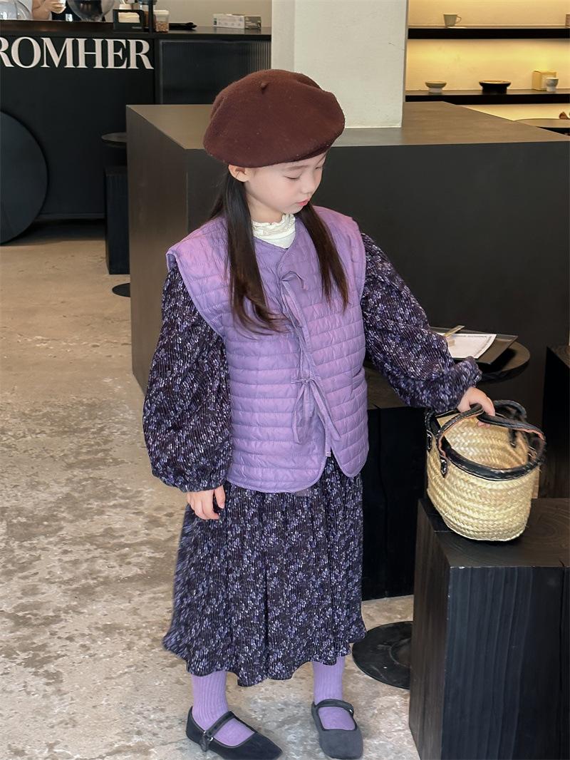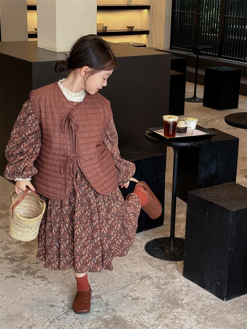 Colete das meninas roupas de outono 2023 novo estilo ocidental jaqueta acolchoada infantil outono moda colete de algodão leve da menina