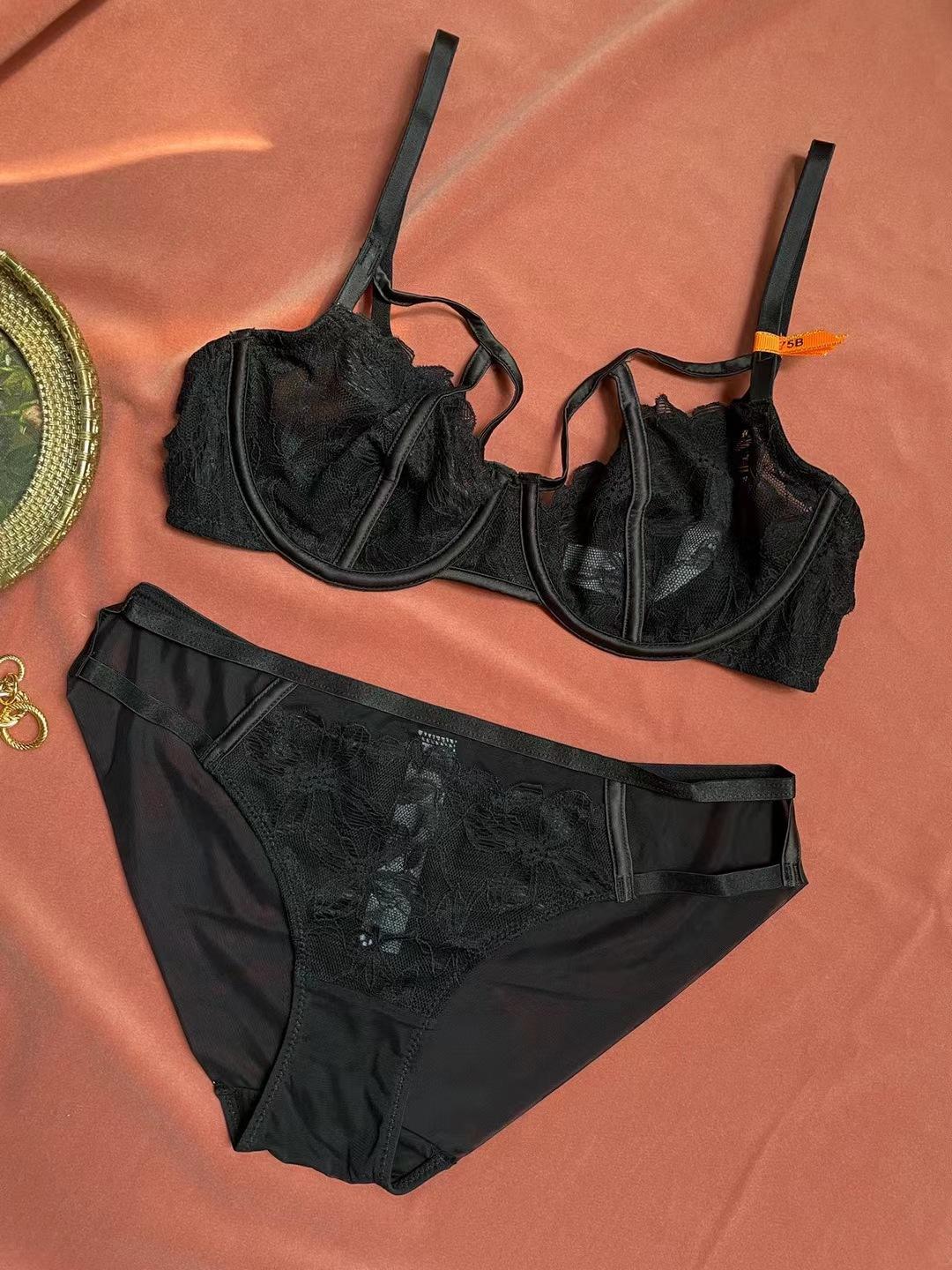 Íntimos de Renda Ultrafinos Europeus e Americanos Sutiã Push-Up Bordado Seios Grandes Mostram Pequeno Conjunto de Sutiã Sexy Sutiã Sutiã