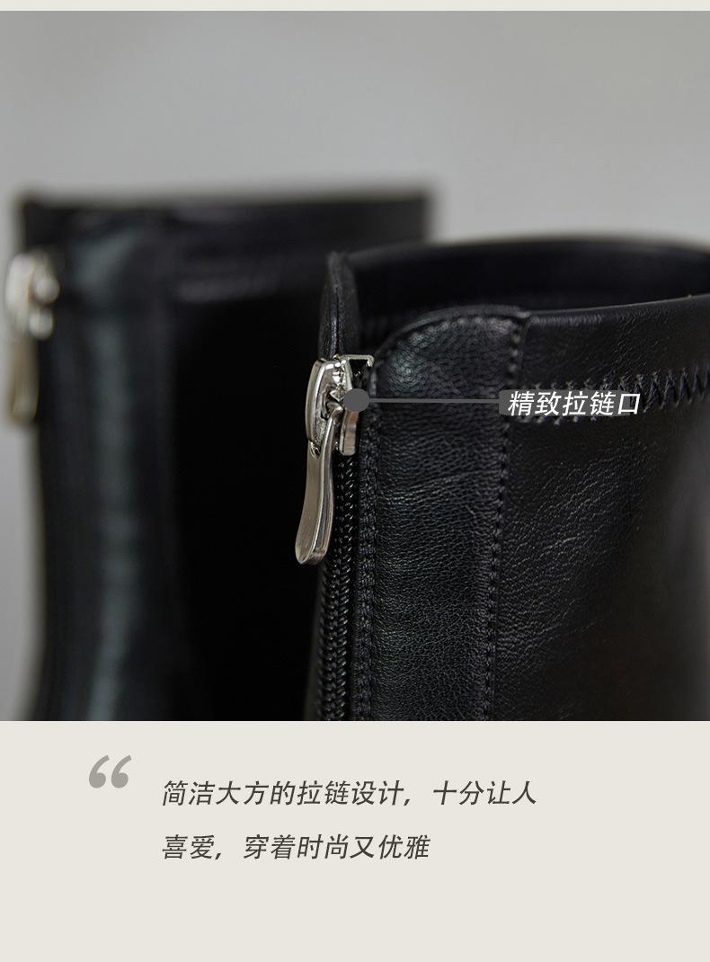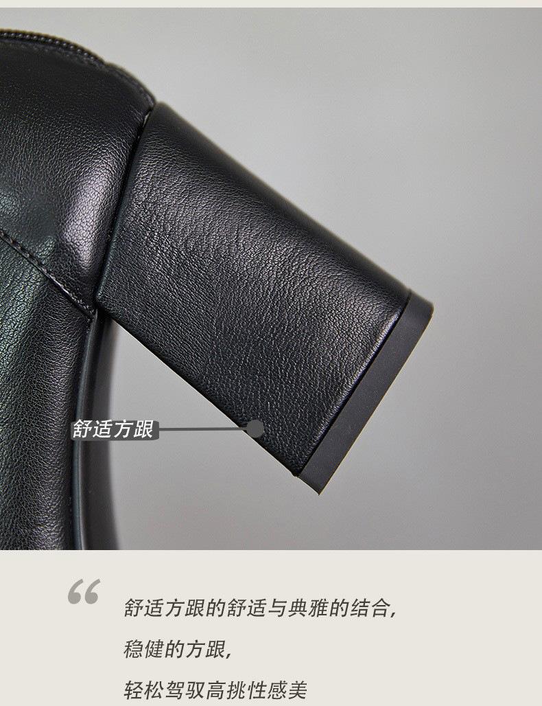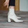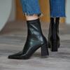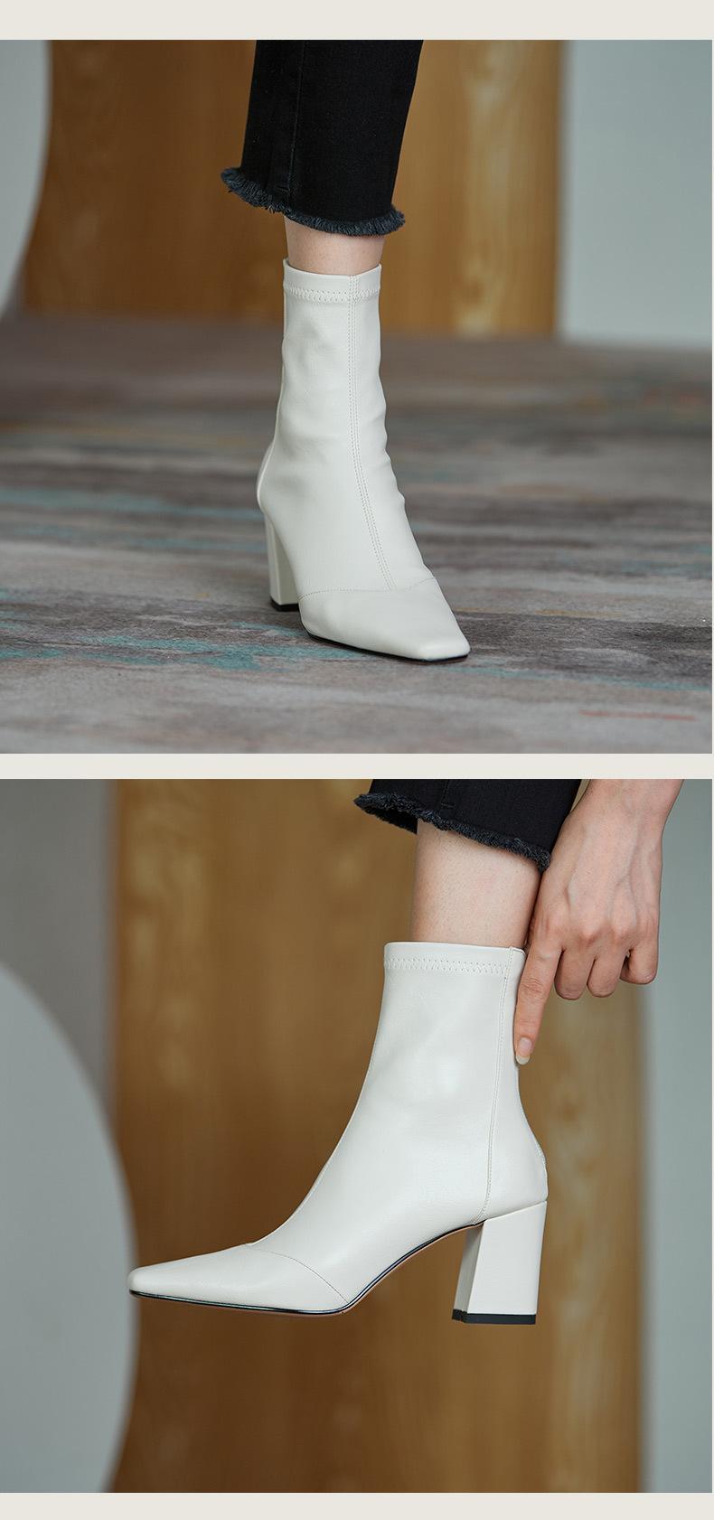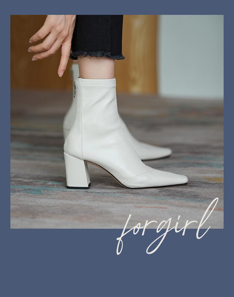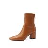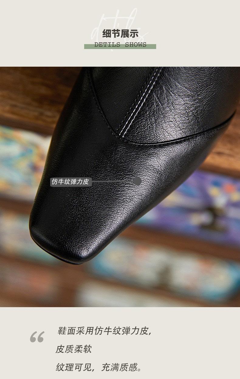 Botas francesas retrô de bico quadrado, justas, salto alto grosso, zíper traseiro, botas simples, outono e inverno, novas botas curtas elásticas de cano baixo para mulheres