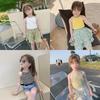 Colete de verão para meninas, moda online para bebês, personalidade infantil, moderno, pequeno, fresco, cor sólida, listrado, roupa externa feminina, top