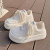 Sapatos brancos para mulheres Sapatos femininos de primavera e outono 2024 Novos sapatos de sola grossa que aumentam a altura I ns sapatos de pão de dedo grande de nicho para todos os tipos de combinações