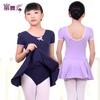 Roupa de Dança de Manga Curta com Bloco de Cores e Cavalo Aberto para Prática de Dança Folclórica Chinesa para Meninas, Roupa de Ginástica Infantil, Ballet Manga Curta