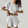 Novo Estilo Primavera e Verão 2026 Pijama de Shorts de Malha Macio e Confortável com Babados Conjunto de Duas Peças Roupa de Casa Transfronteiriça para Mulheres
