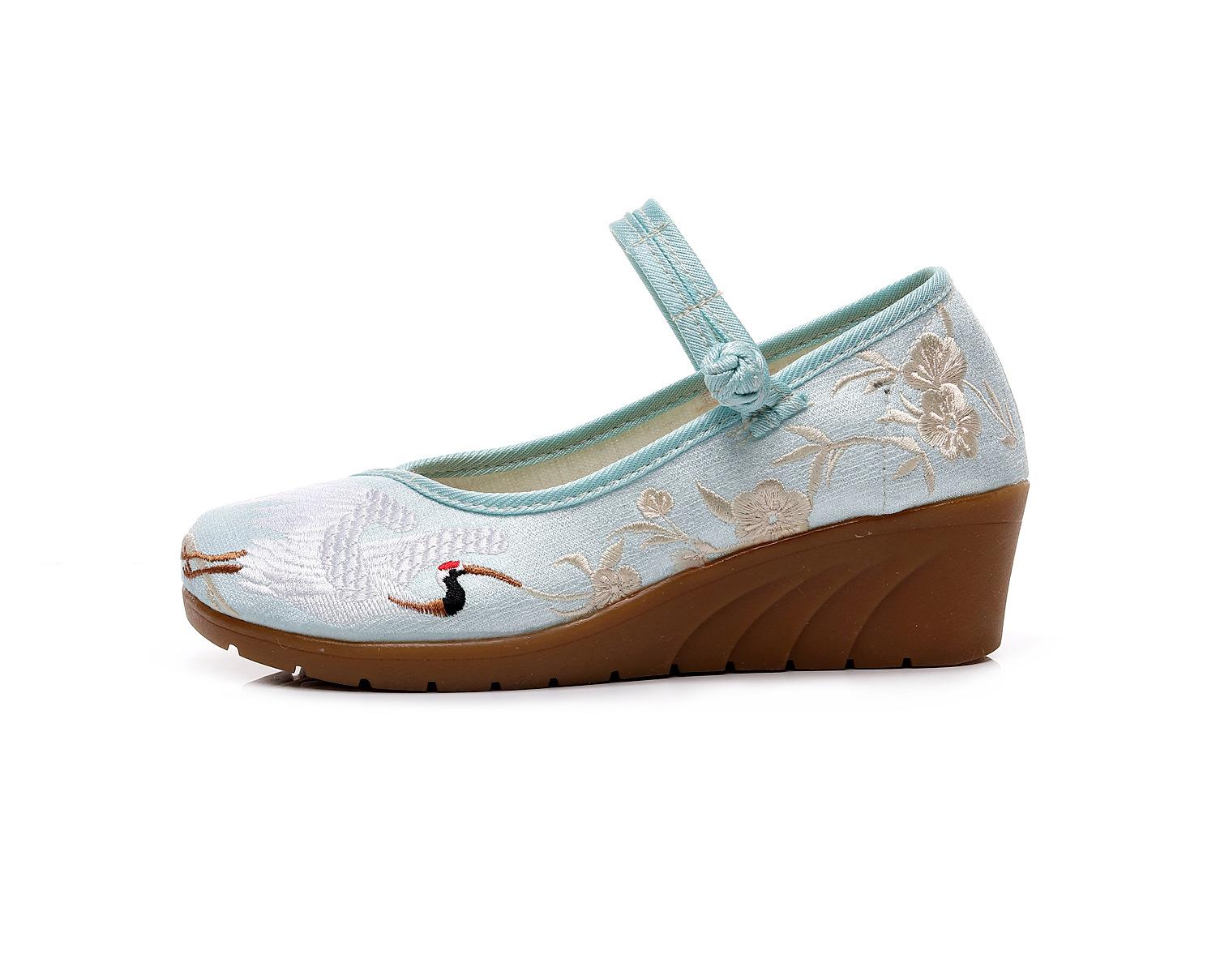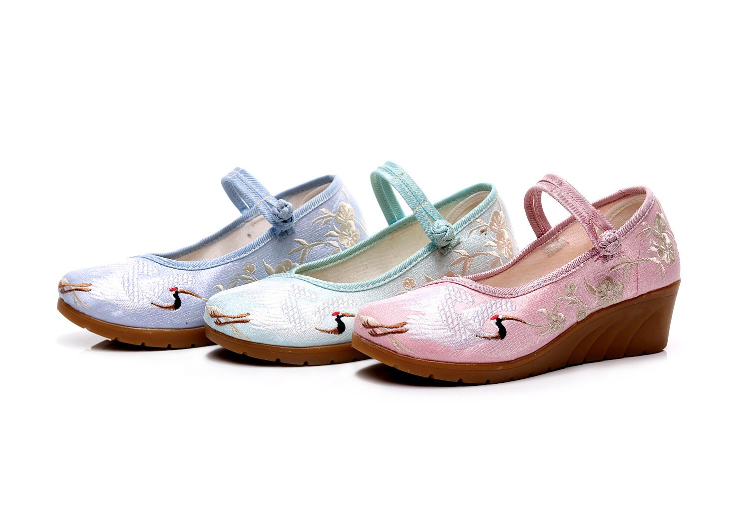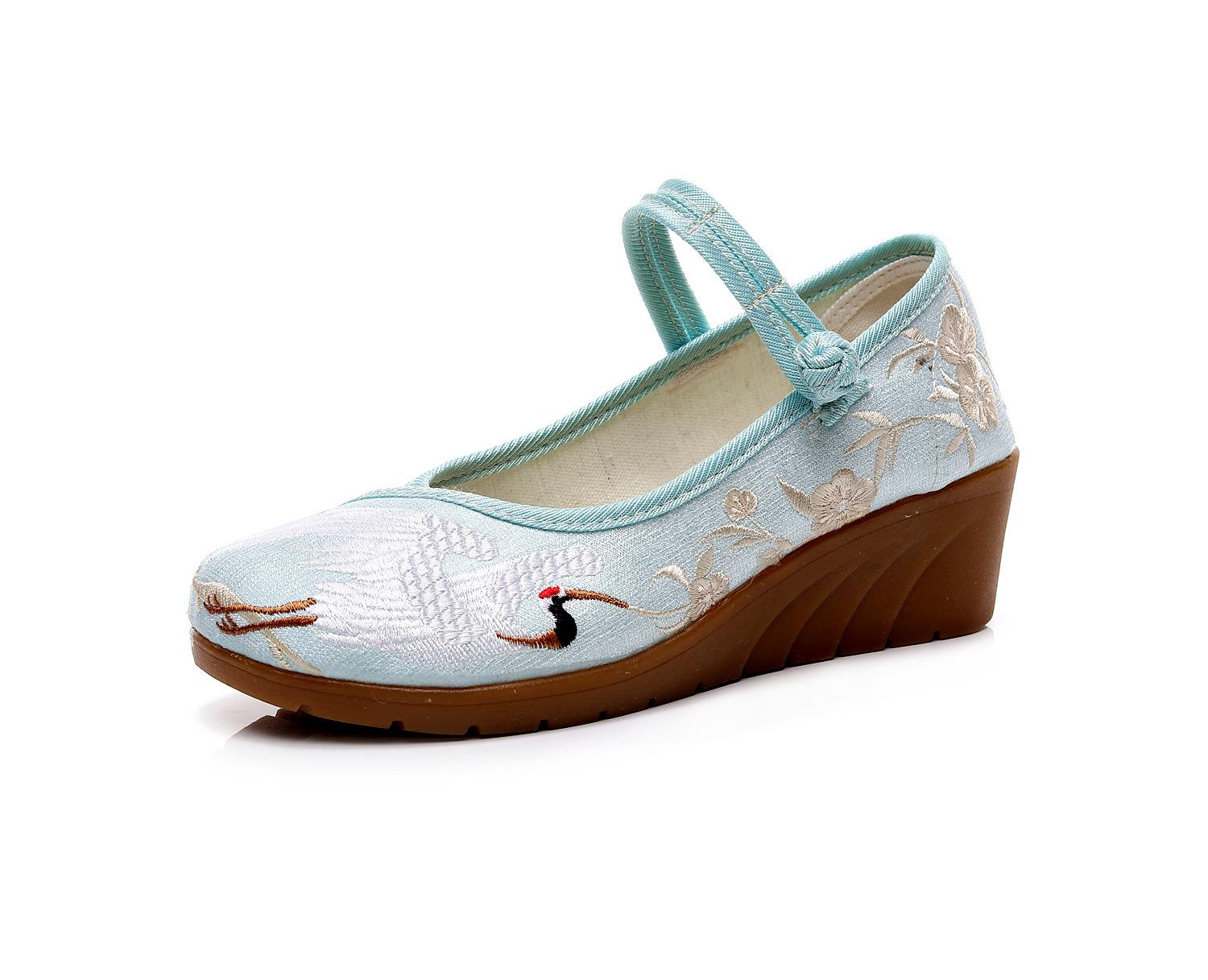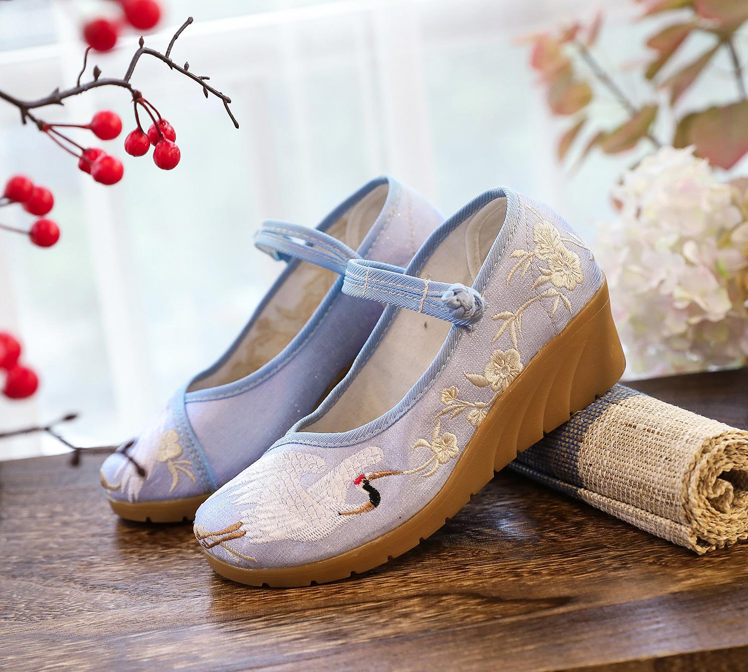 Sapatos de salto alto de camada única Hanfu sapatos guindaste bordado sapatos de pano estilo nacional traje antigo tendão inferior cunha sapatos femininos