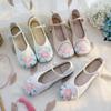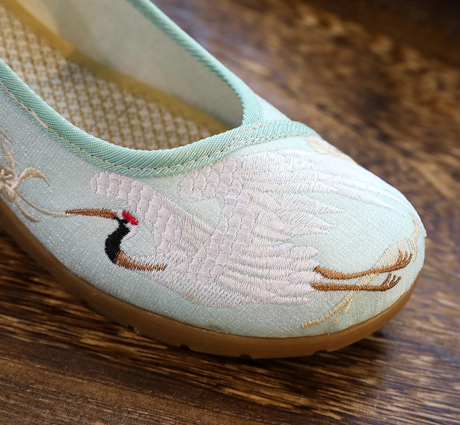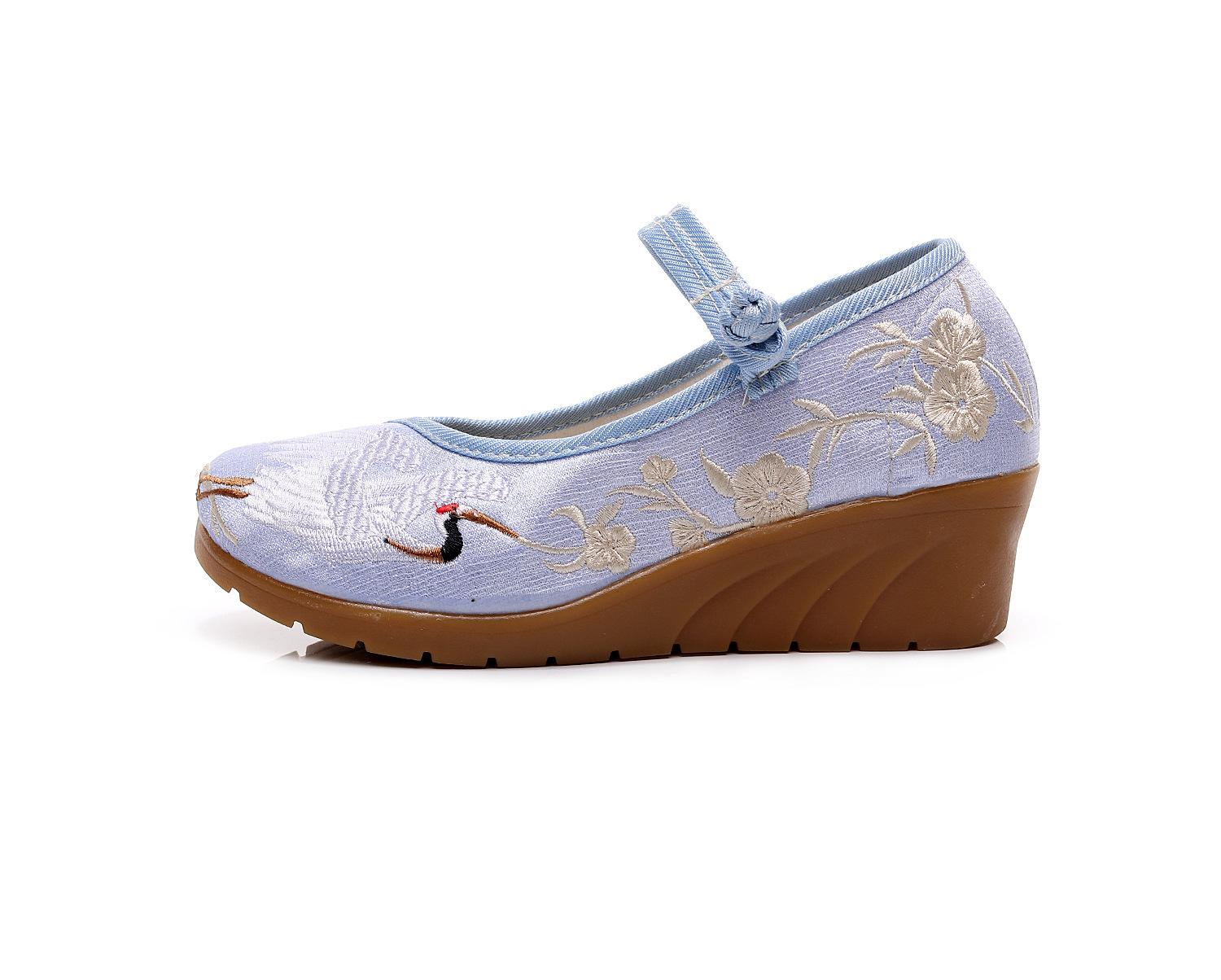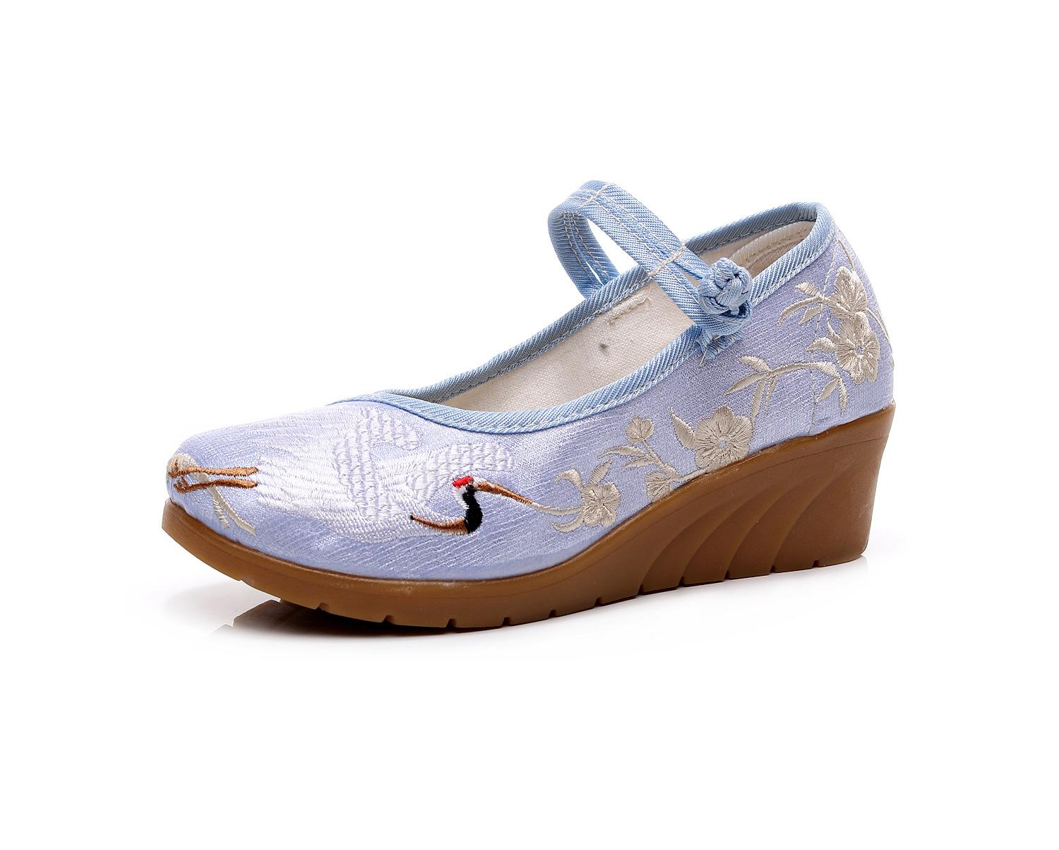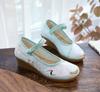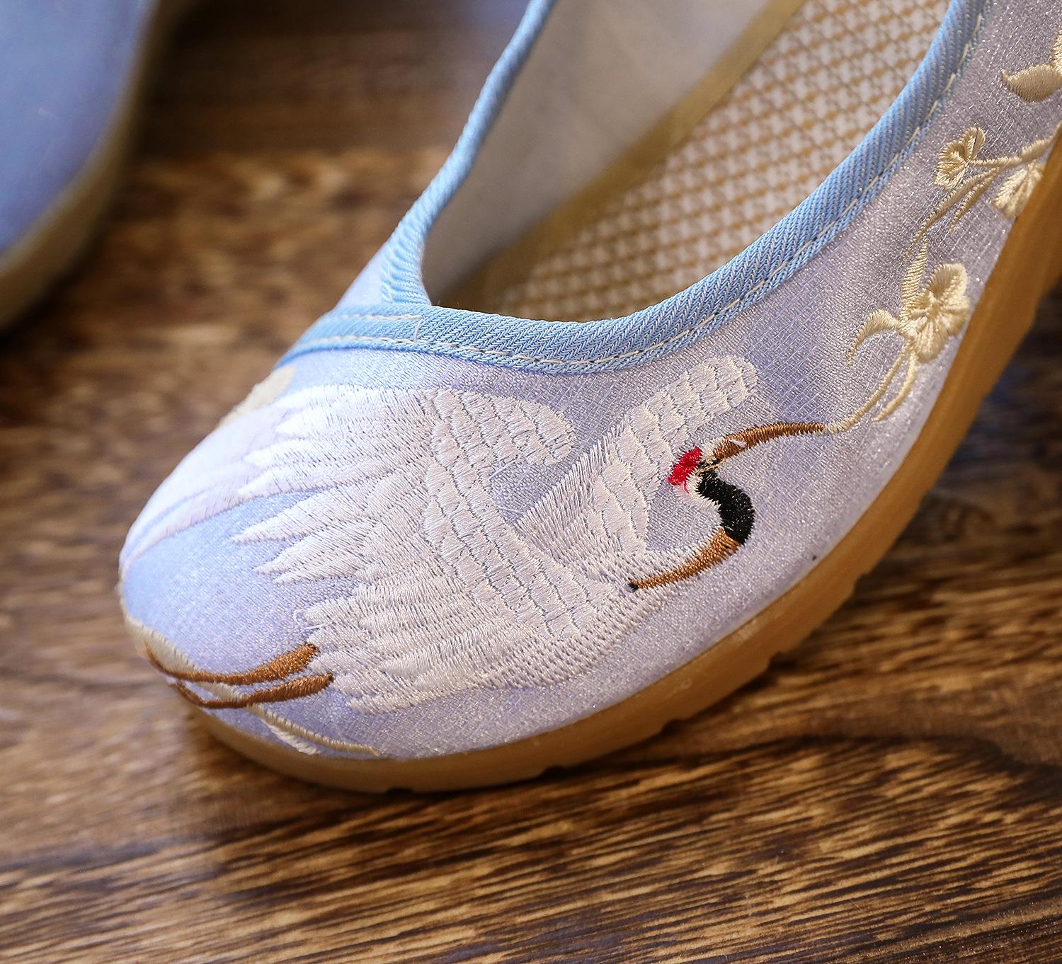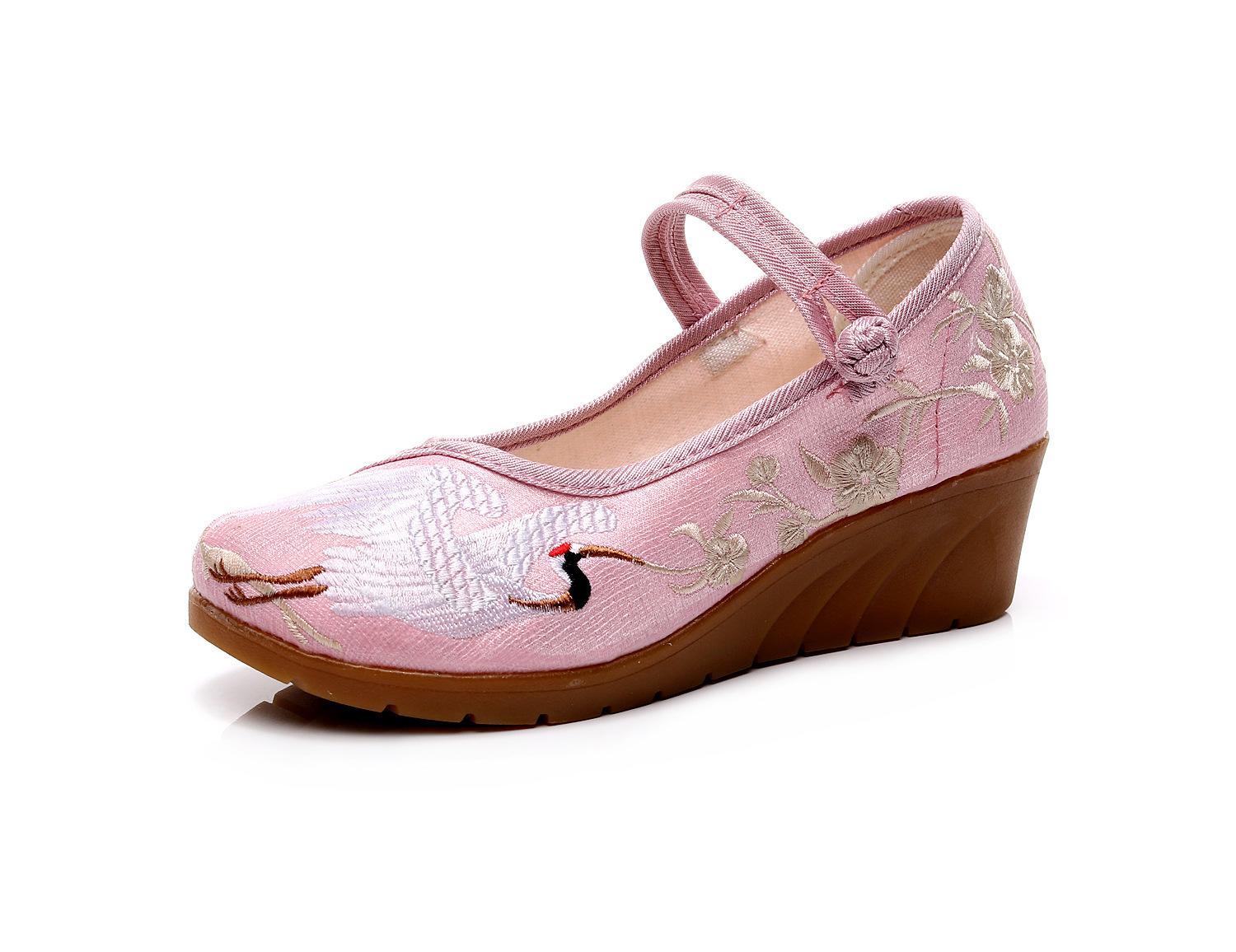 Sapatos de salto alto de camada única Hanfu sapatos guindaste bordado sapatos de pano estilo nacional traje antigo tendão inferior cunha sapatos femininos