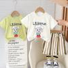 Roupas infantis de verão 2024 verão novos meninos e meninas desenho animado impresso camiseta de manga curta camiseta de bebê de duas peças