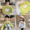 Moletom feminino infantil primavera e outono, estilo ocidental, personalidade infantil, marca da moda, estilo coreano, desenho animado, falso, duas peças, com furos, popular na Internet