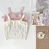 Roupa Infantil Cutemily Estilo Verão Bebê Menina Regata Tricotada Bebê Menina Recorte Folha de Lótus Bonita Fina