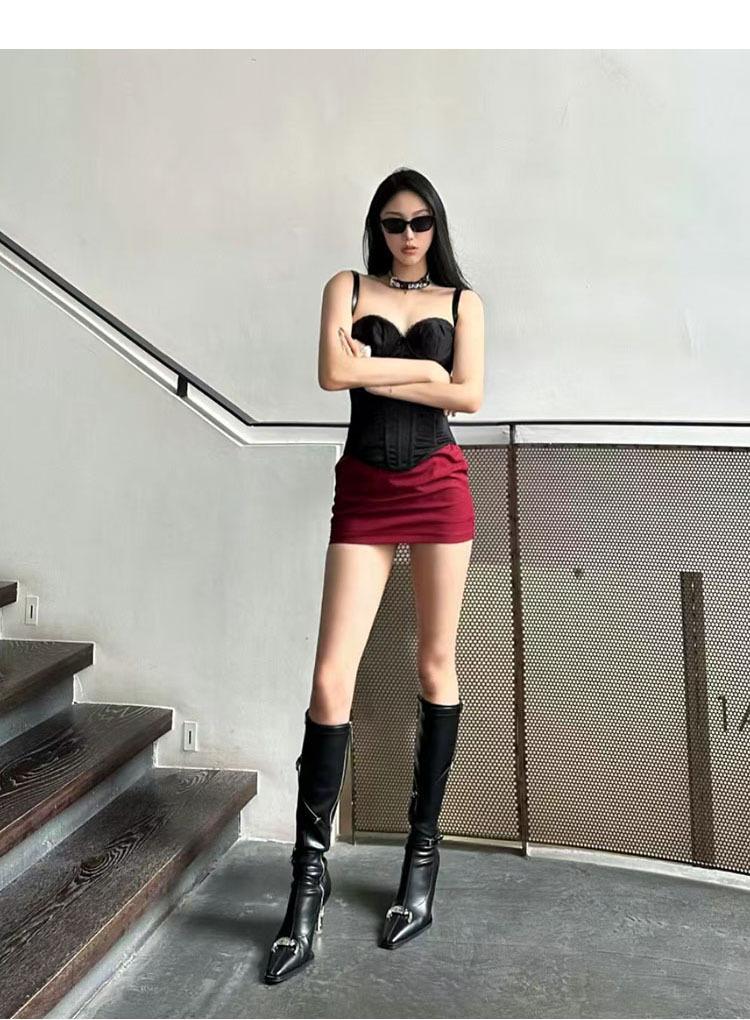Botas femininas estilo funcional, estilo quente, outono 2023, novas passarelas europeias e americanas, salto alto com gancho pontudo, botas altas