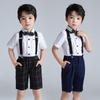Vestido de menino bonito novo verão xadrez calças bib de duas peças estilo britânico infantil piano vestido de desempenho