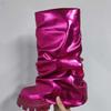2024 Comércio Exterior Europeu e Americano Novas Botas de Moda de Passarela de Desempenho Dourado de Fundo Grosso Calças Plissadas de Pedal Botas de Tubo Botas de Tubo Médio