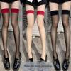 Ins Internet Celebridade Borda Vermelha Seda Preta Sexy Costura Meias Coxa Fina Sexy Seda Preta Puro Tubo Longo Meias de Joelho para Mulheres
