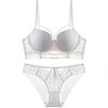 Lingerie sexy francesa ultrafina conjunto de lingerie de renda de cetim peito grande mostrando peito pequeno sutiã anti-flacidez para meninas