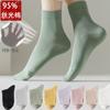 95% algodão meias de tubo médio primavera e verão malha fina de algodão puro meias femininas cor sólida meias de algodão penteado meias desodorante antibacteriano