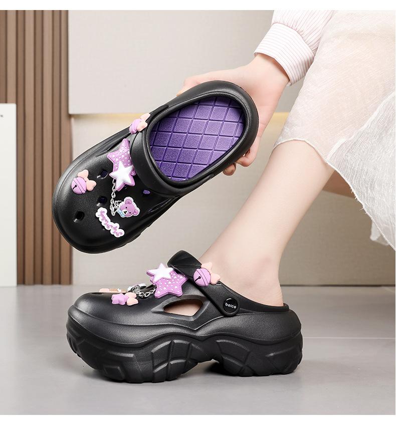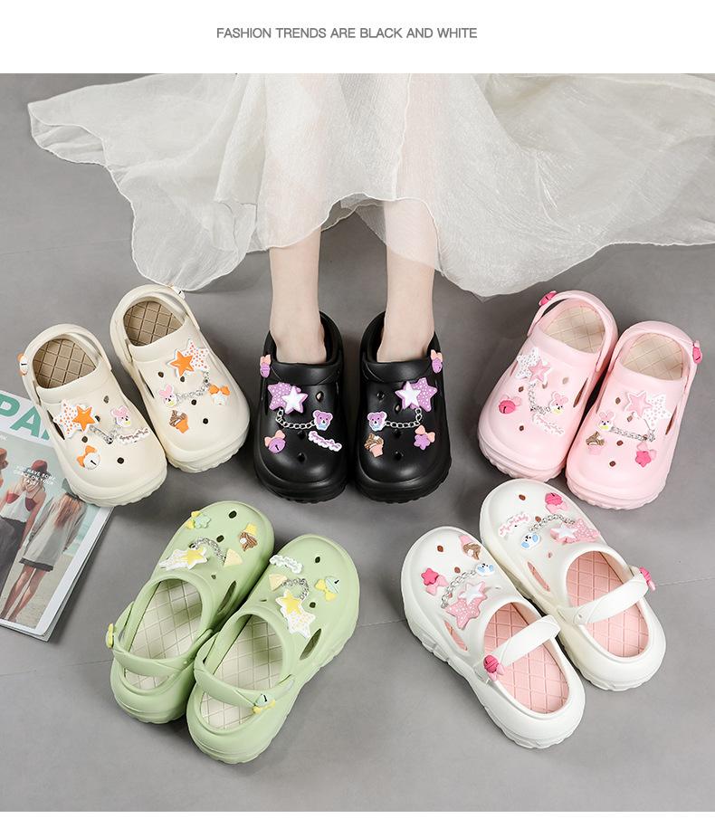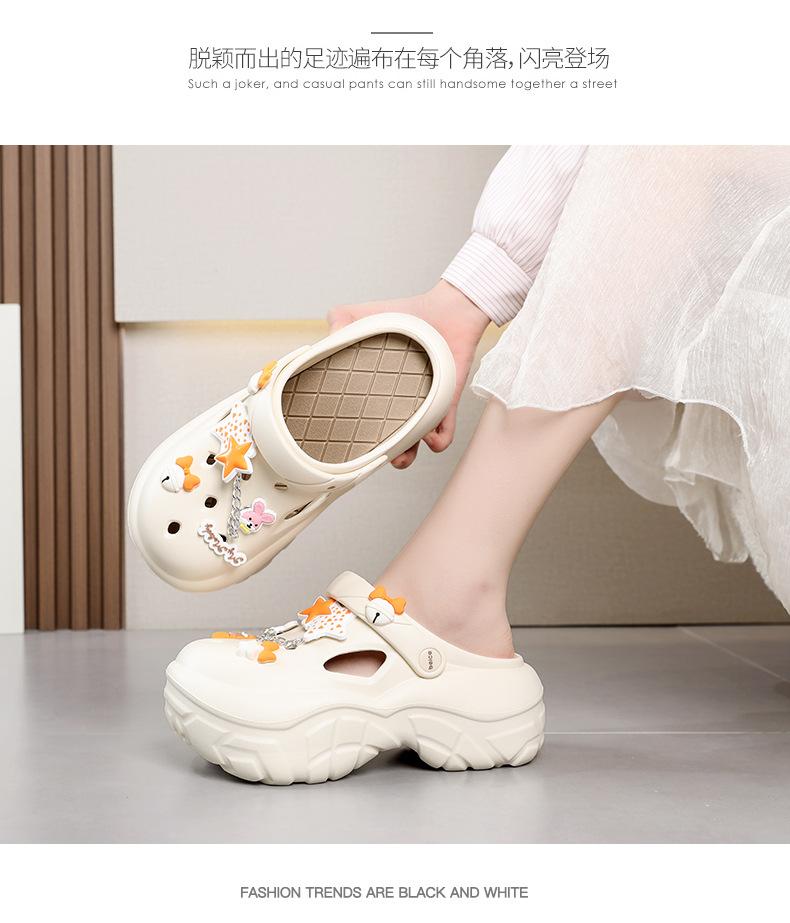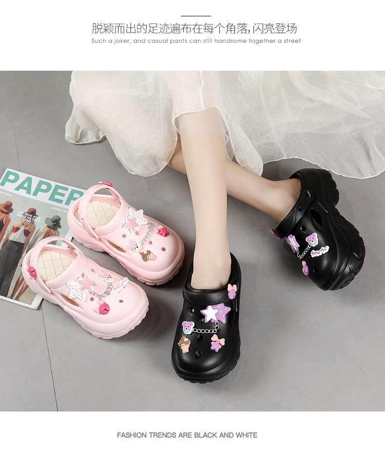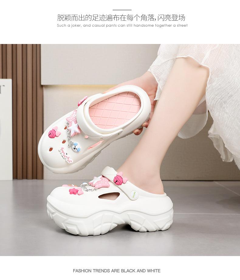 Internet celebridade plataforma de moda buraco sapatos mulheres fundo grosso aumentou antiderrapante bonito desenhos animados praia sandálias para uso externo outono e verão