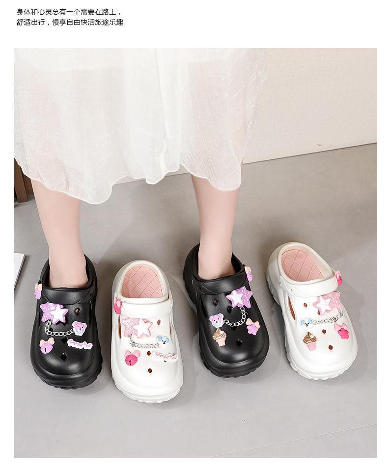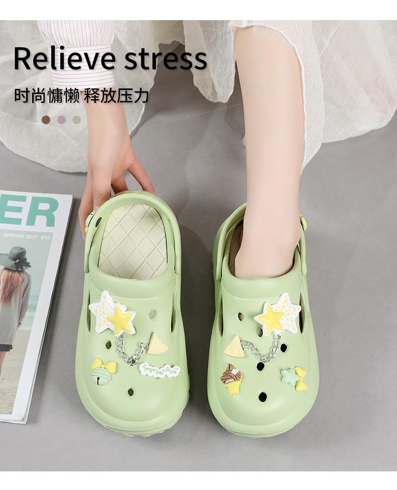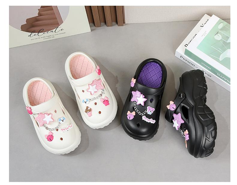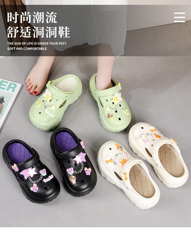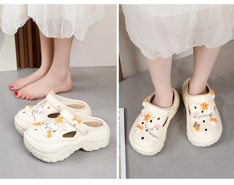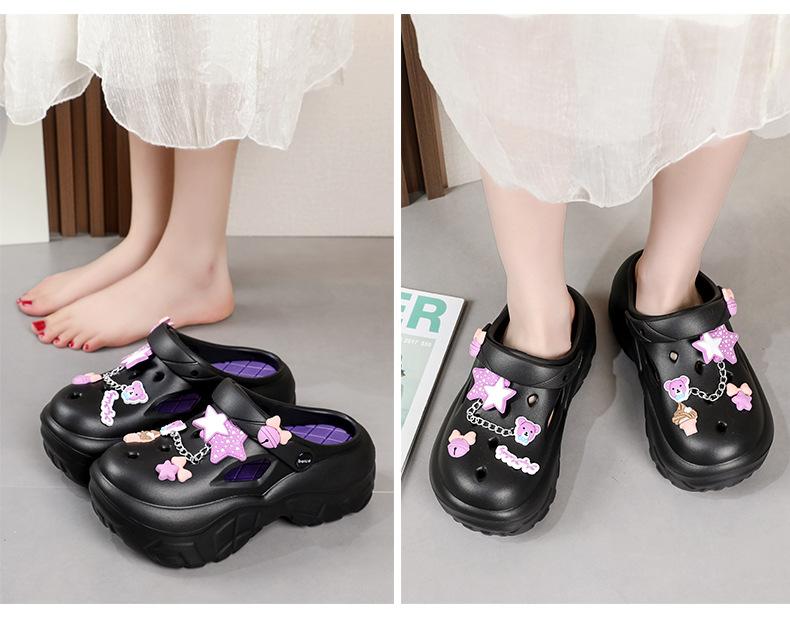 Internet celebridade plataforma de moda buraco sapatos mulheres fundo grosso aumentou antiderrapante bonito desenhos animados praia sandálias para uso externo outono e verão