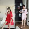 Pijama feminino europeu e americano com decote em V novo conjunto de shorts de renda de botão em casa confortável