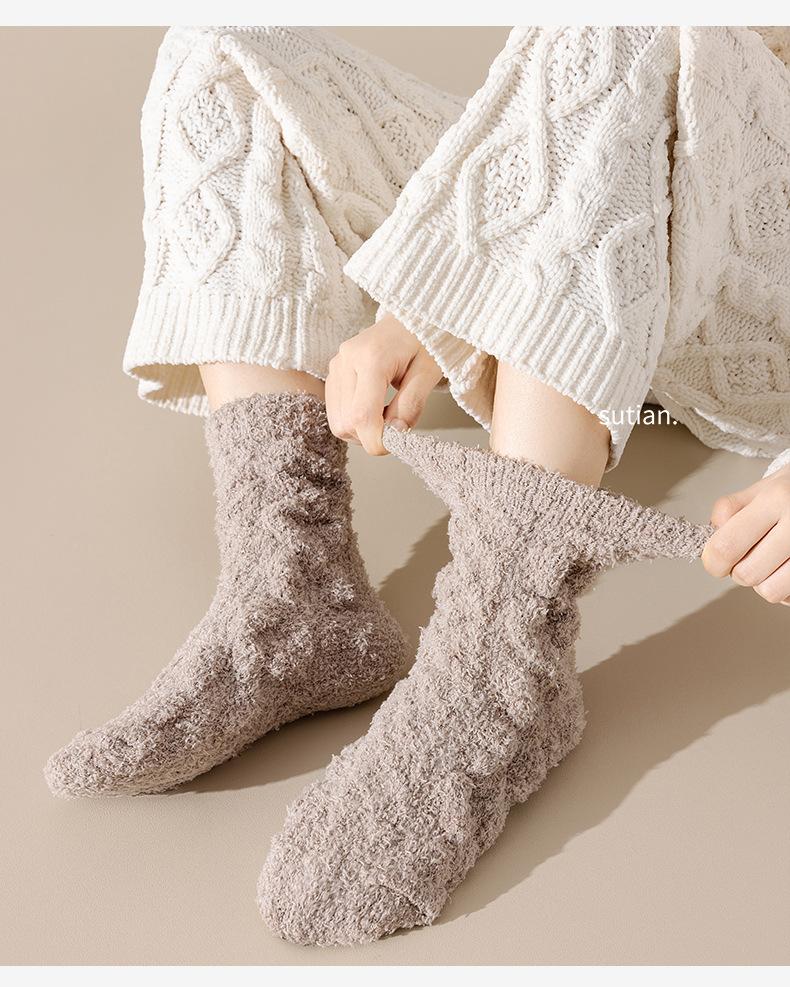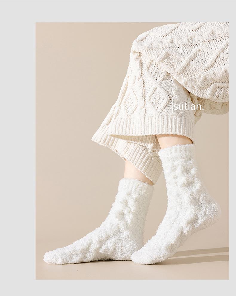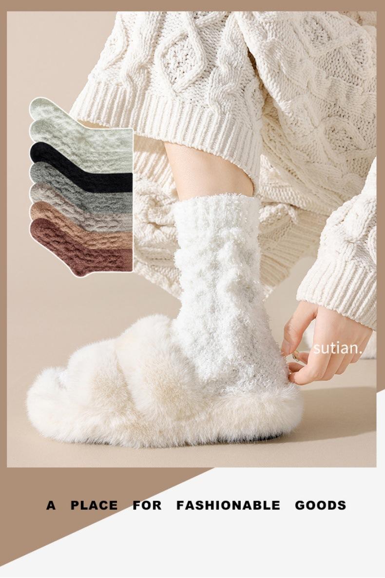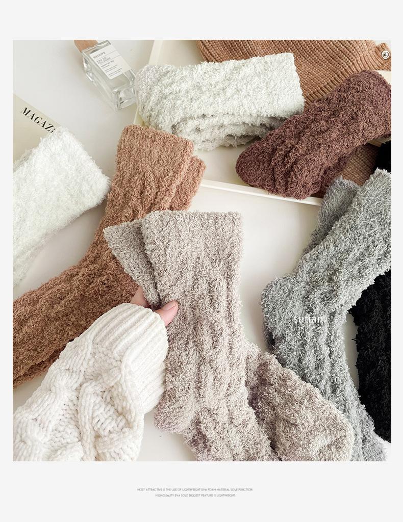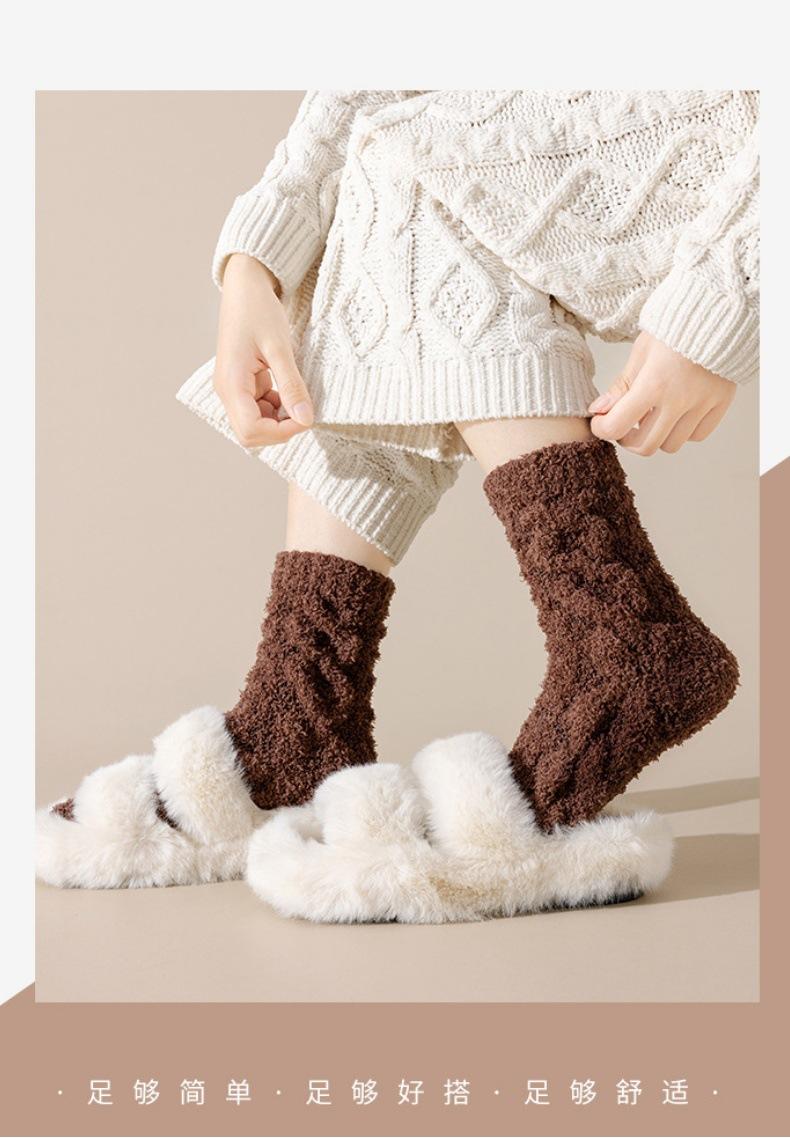 Meias femininas de lã coral para outono e inverno, forradas com lã grossa, quentes e longas, meias longas de pelúcia da moda para mulheres