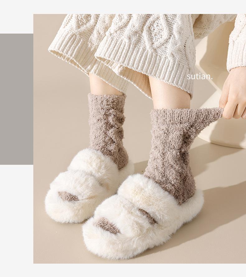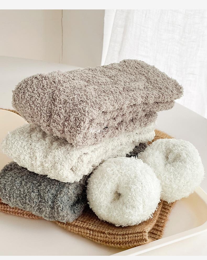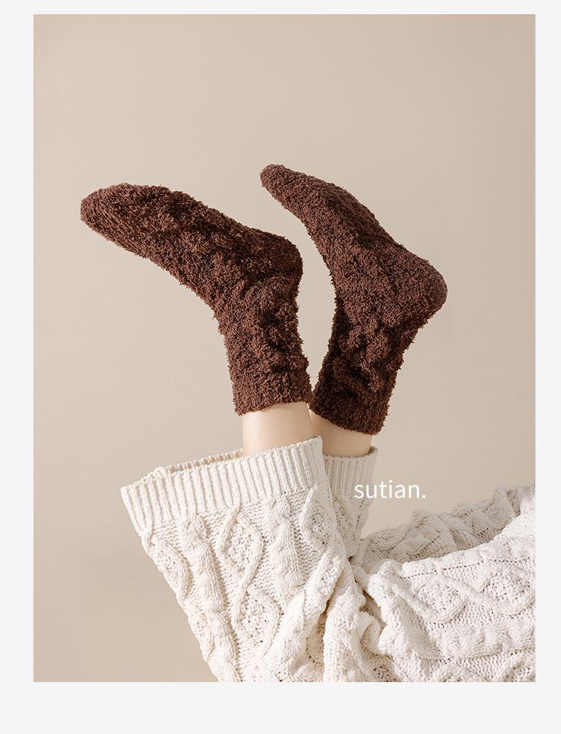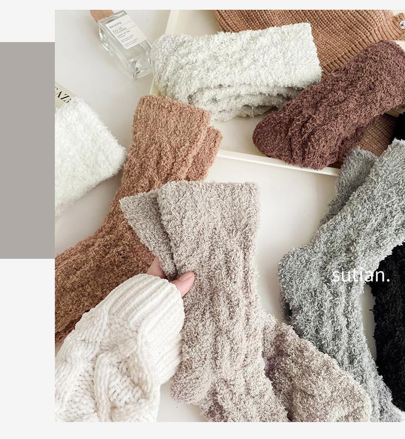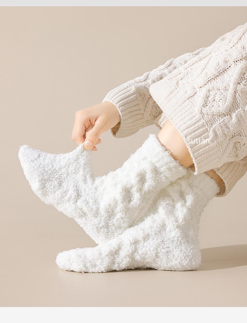 Meias femininas de lã coral para outono e inverno, forradas com lã grossa, quentes e longas, meias longas de pelúcia da moda para mulheres