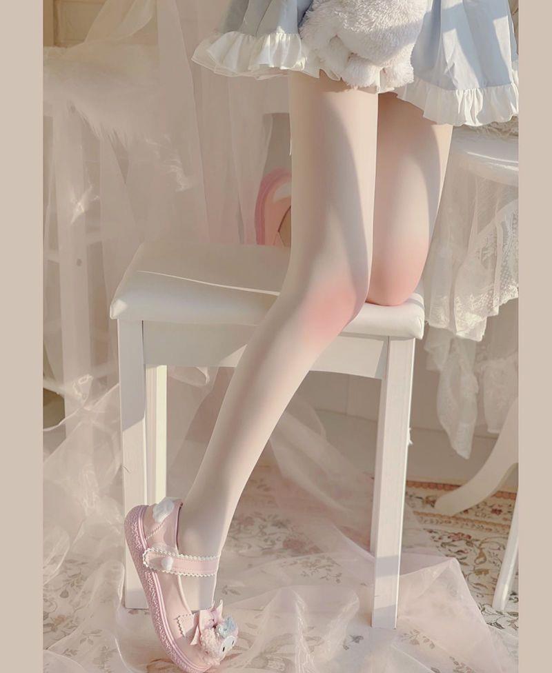 Lolita Japonesa Pure White Silk Blush Meias Verão Finas Doce Menina Bonito Branco Pantyhose