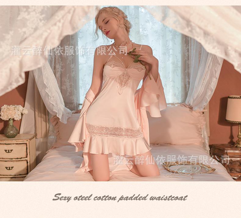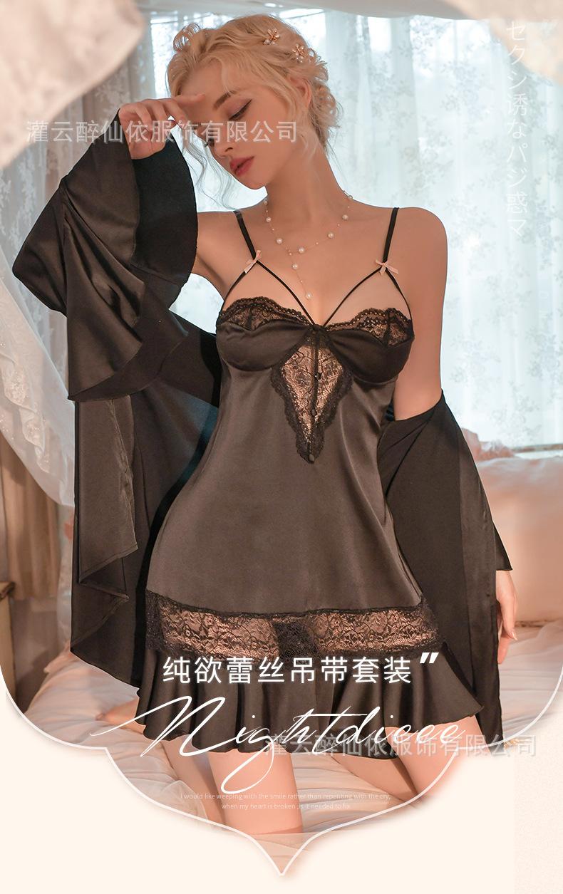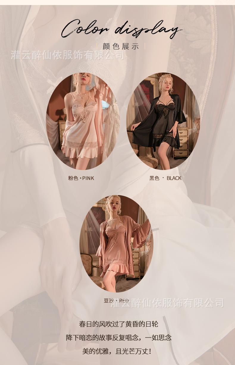 Black (nightgown), Black separate jacket (robe + belt), Pink (nightgown), Pink jacket (robe + belt), Bean past...