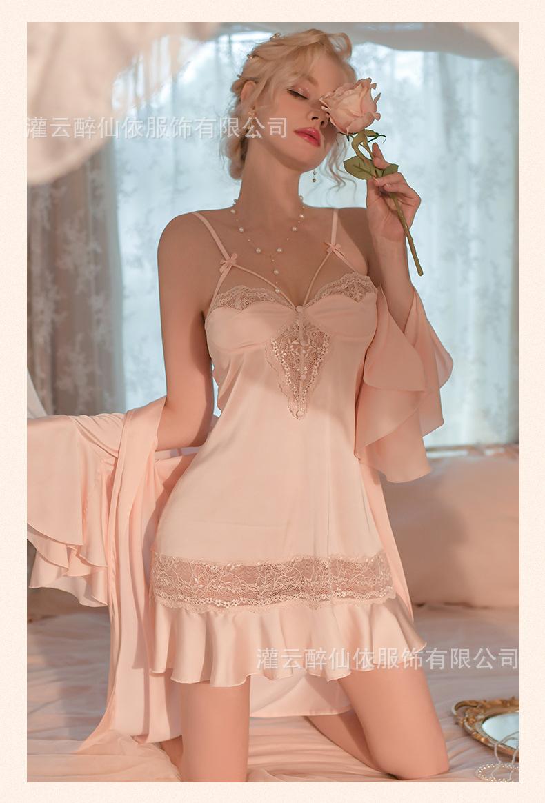 2023 primavera novo pijama sexy costura de renda feminina cetim puro vento backless suspensórios home set 1924