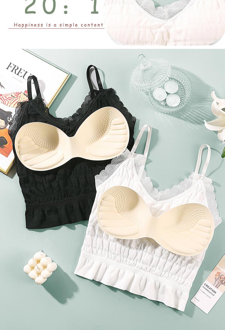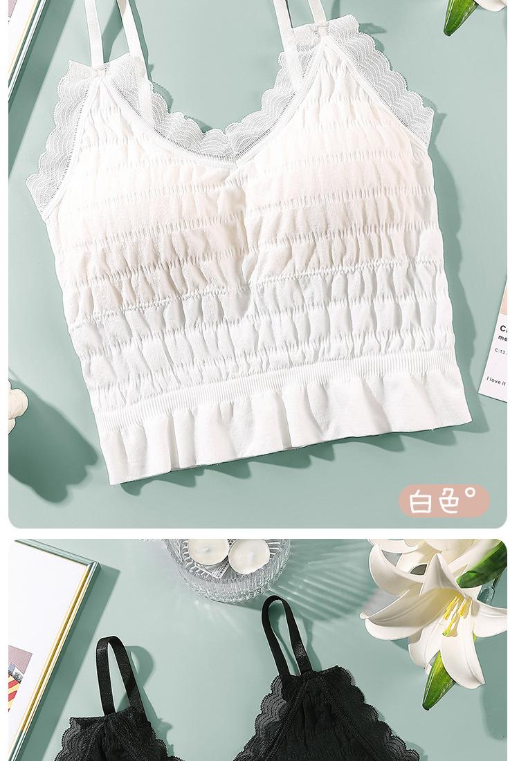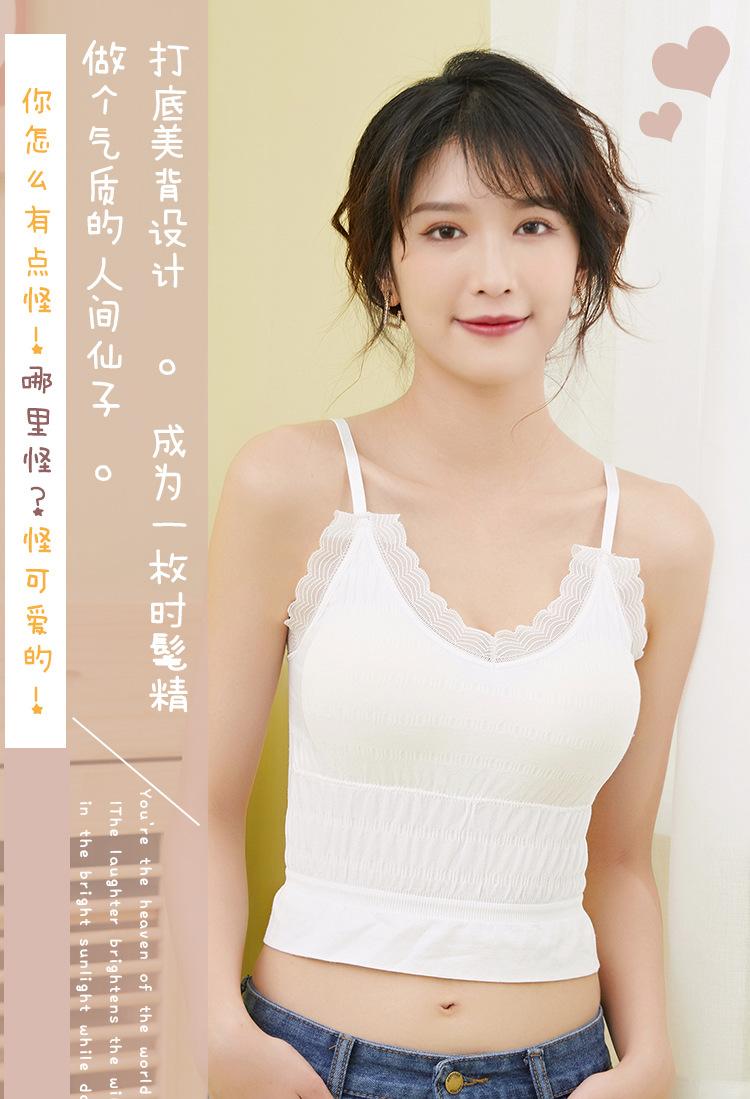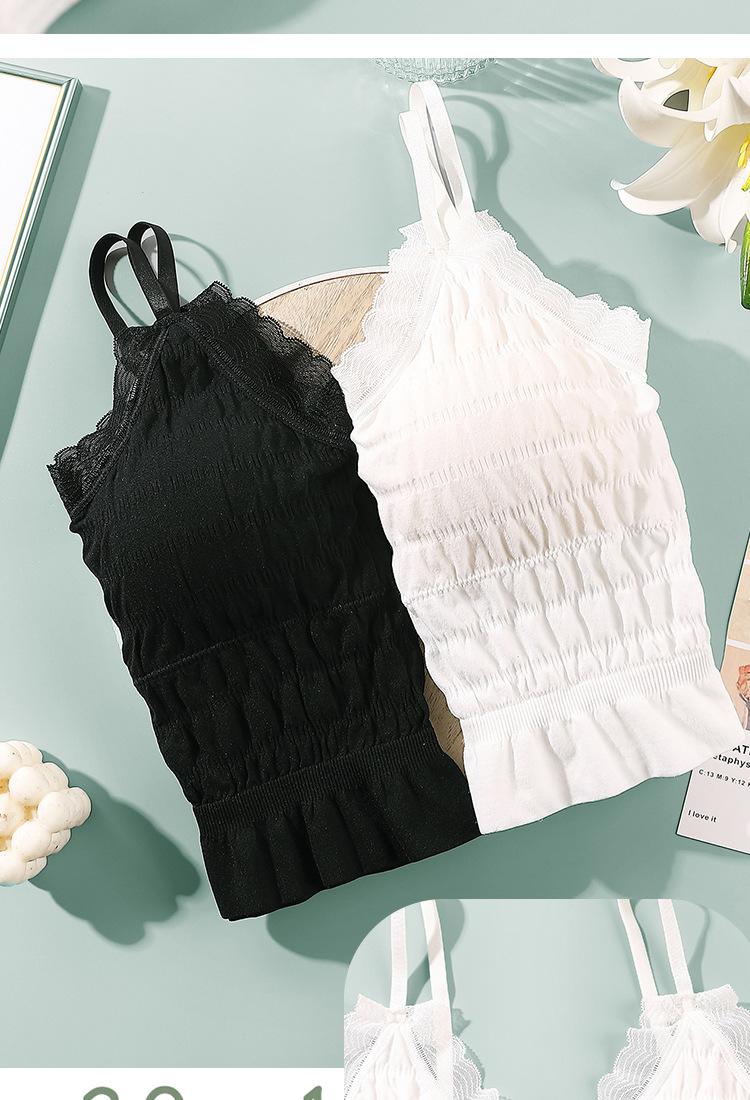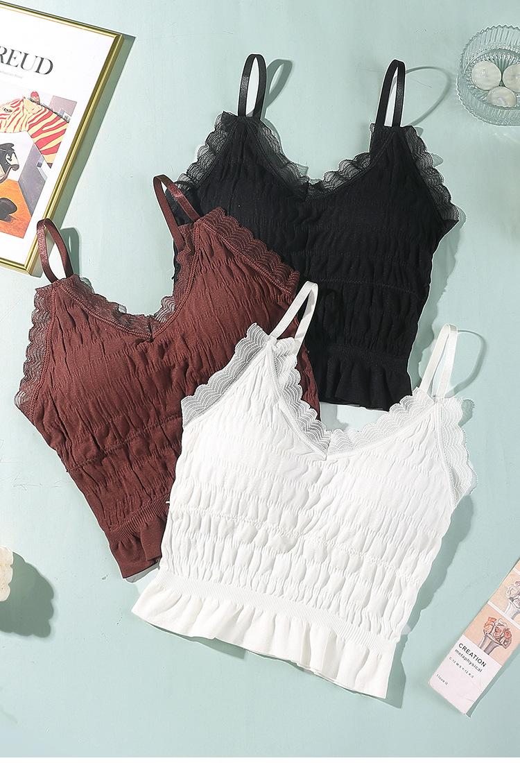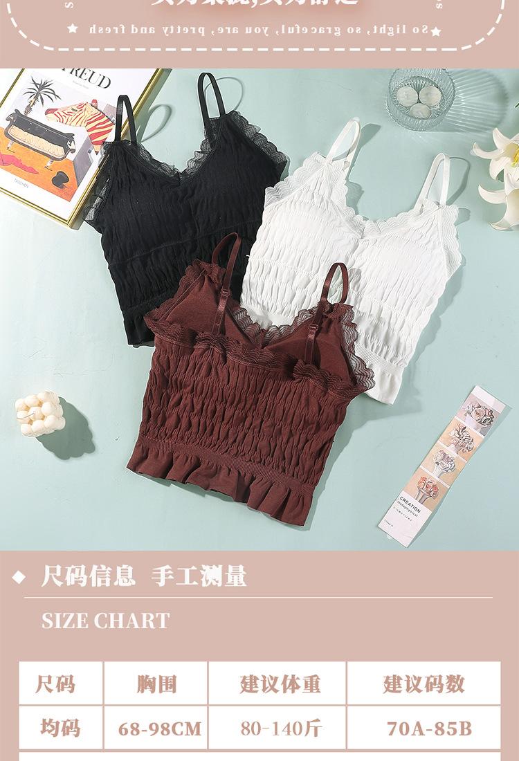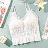 Sem costura Novo Estilo Francês Plissado Lace Pequeno Camisola Colete Mulheres com Almofada no Peito Desgaste Exterior Base Beleza Back Wrap Underwear Mulheres
