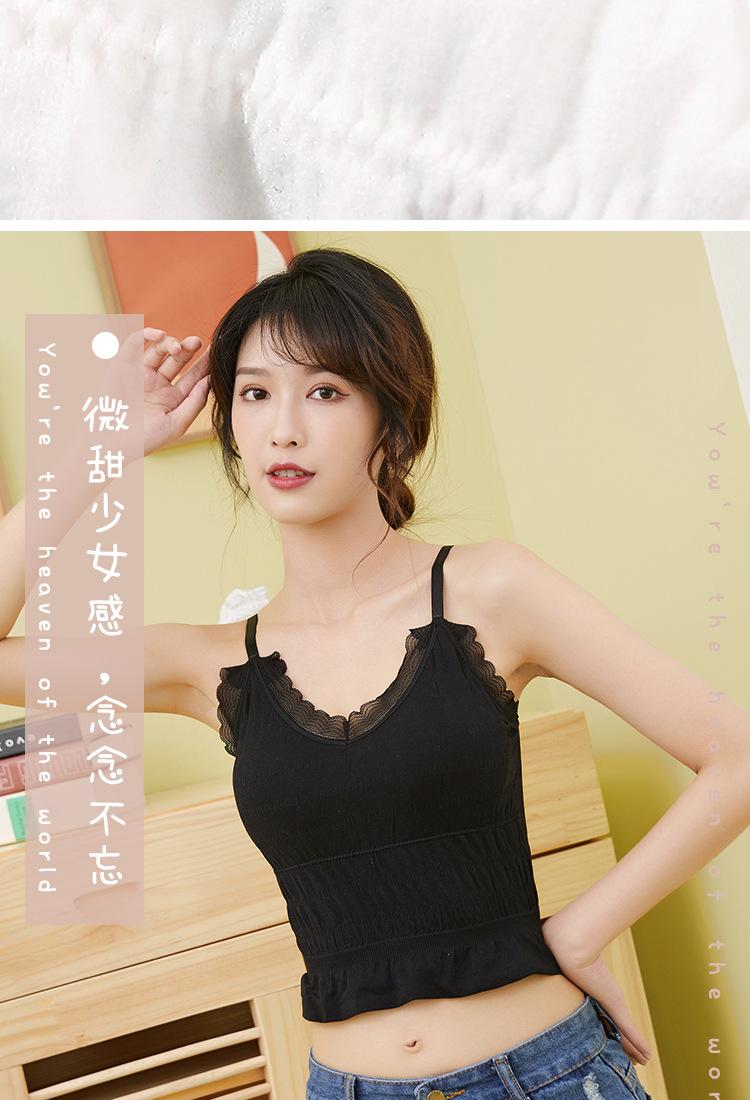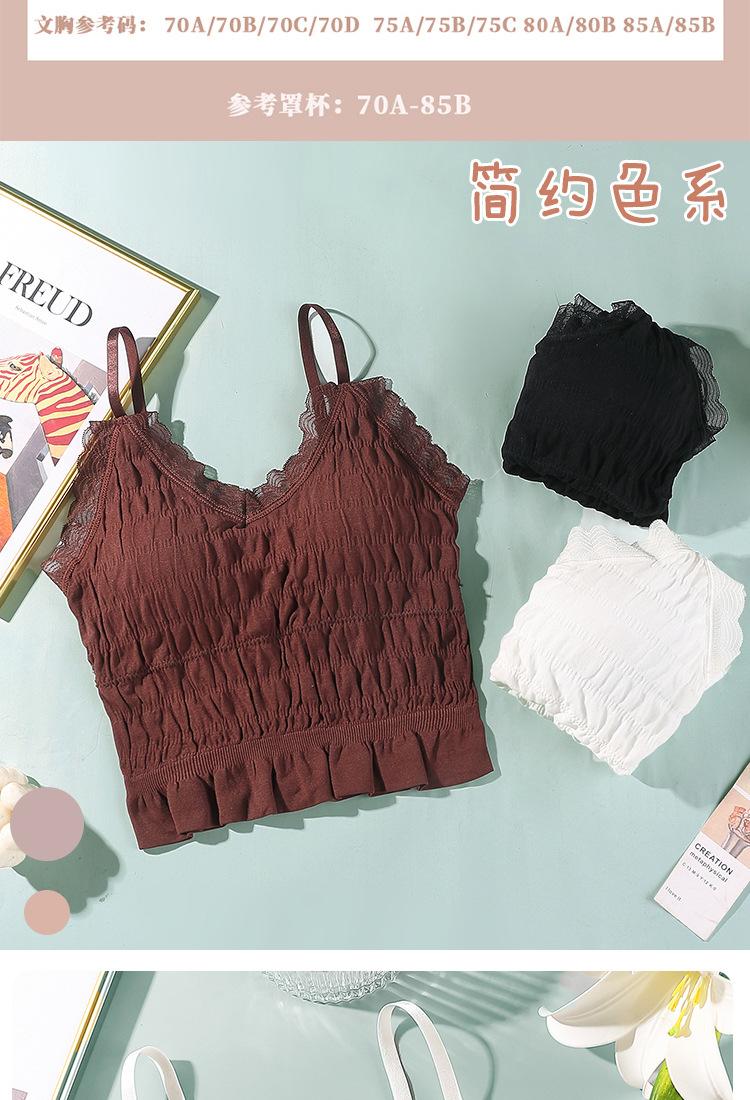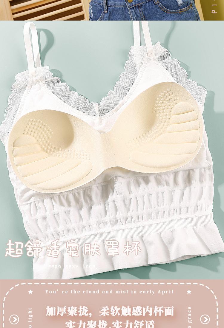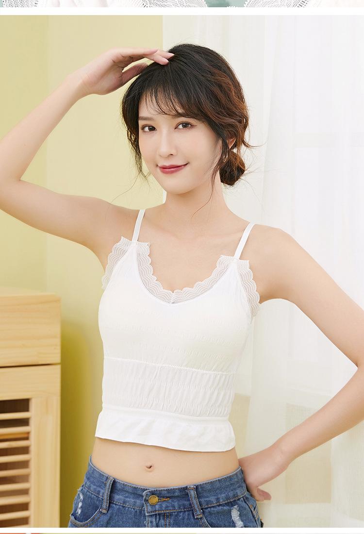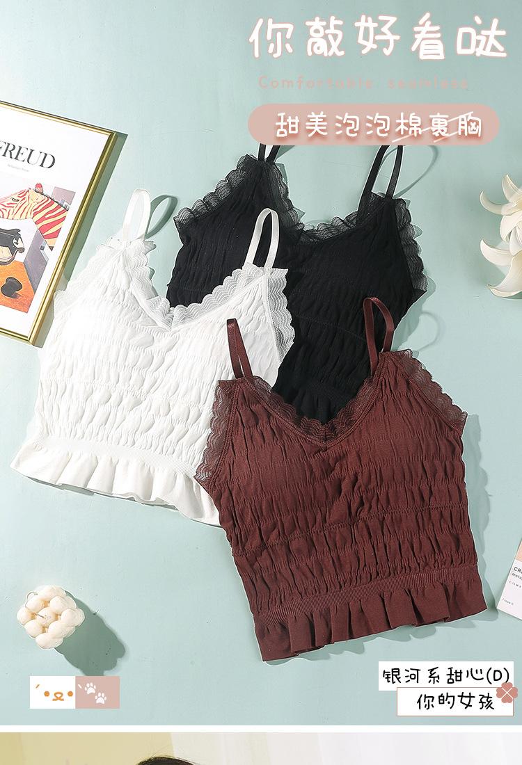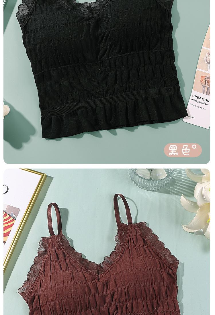 Sem costura Novo Estilo Francês Plissado Lace Pequeno Camisola Colete Mulheres com Almofada no Peito Desgaste Exterior Base Beleza Back Wrap Underwear Mulheres