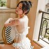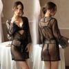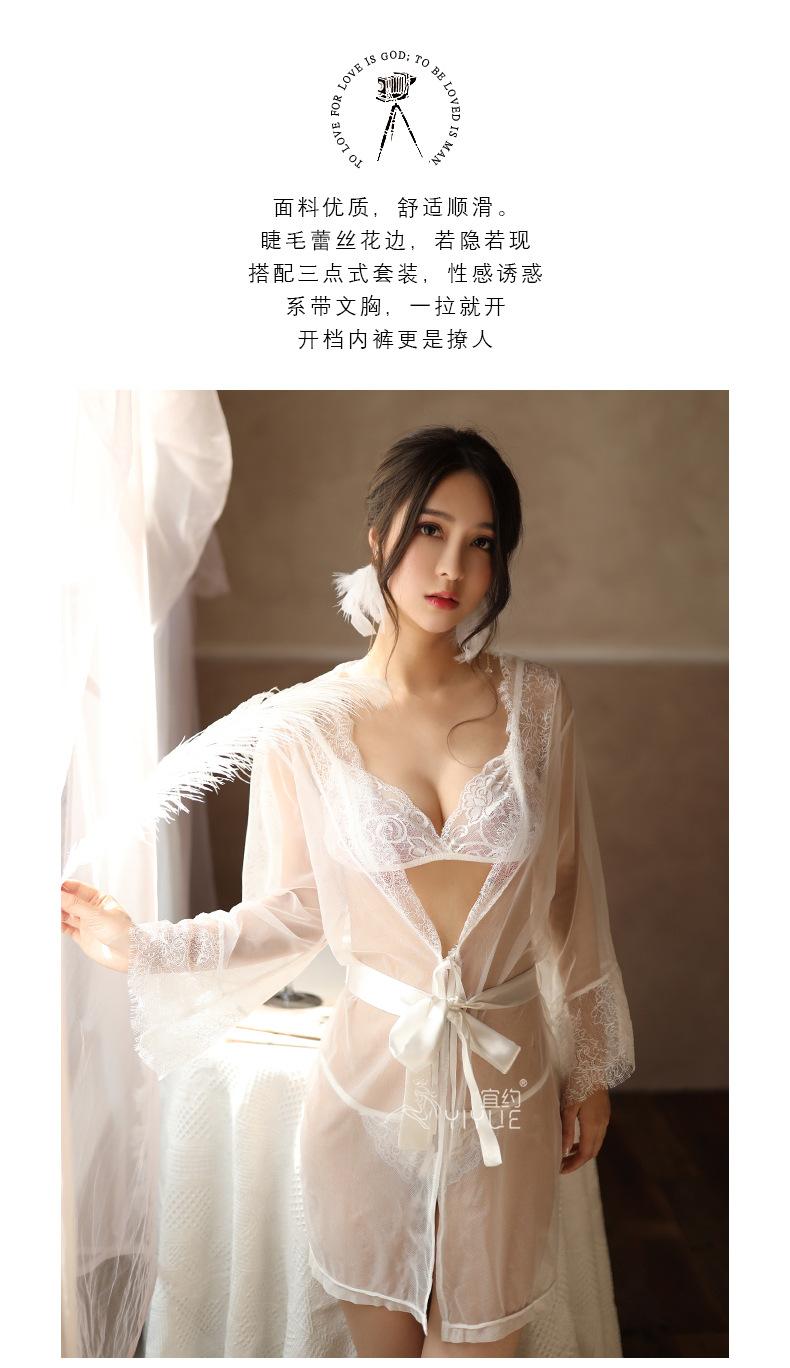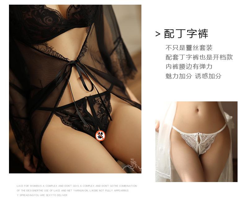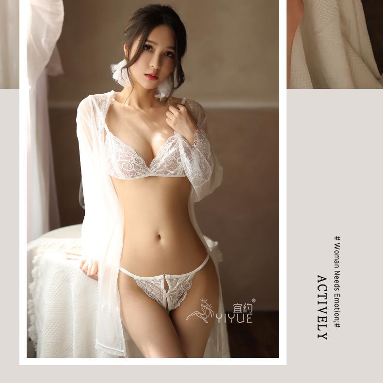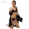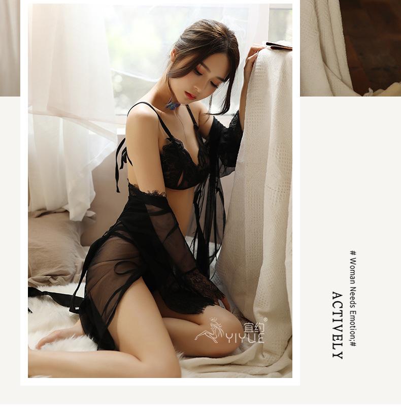 Yiyo Lingerie Conjunto de quatro peças feminino Pijama de renda Malha Lace-up Sexy Nightdress Tentação Conjunto Comércio Exterior 8068