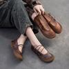 Shanghai Jie shu 2024 primavera nova primeira camada de couro de vaca sandálias ocas confortáveis casuais respiráveis sapatos únicos sapatos femininos all-match