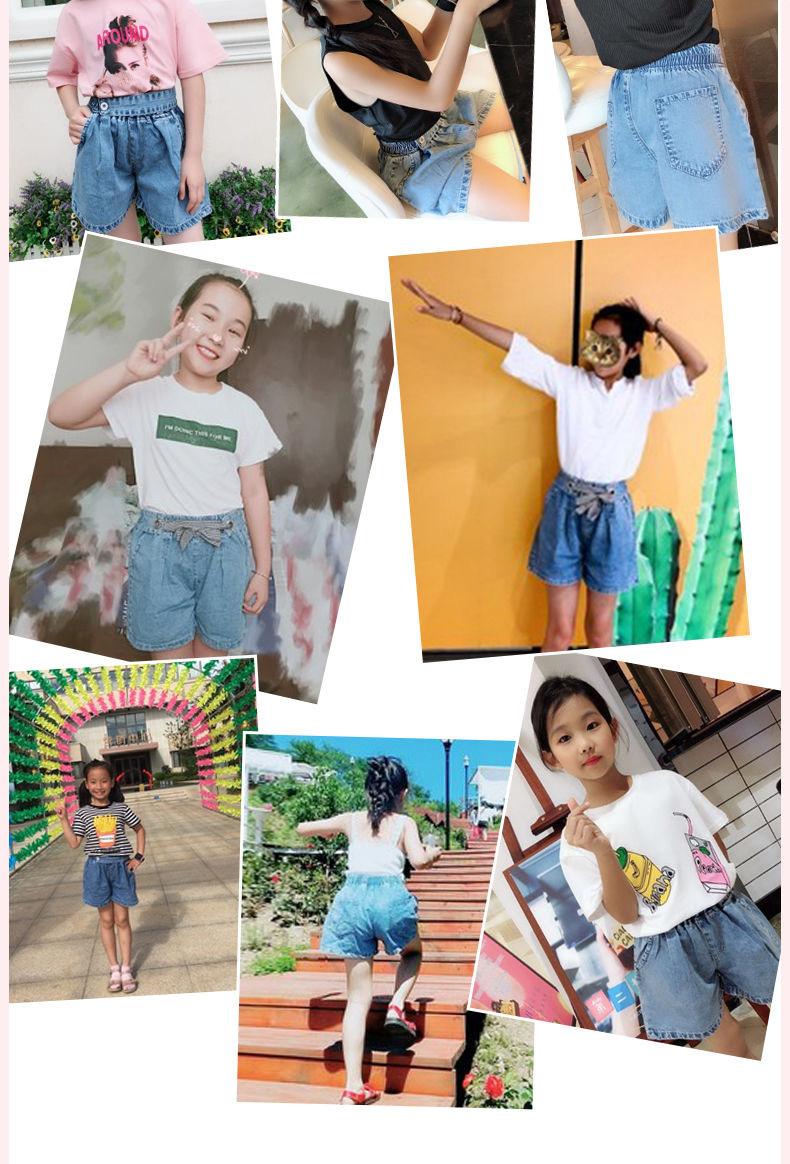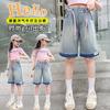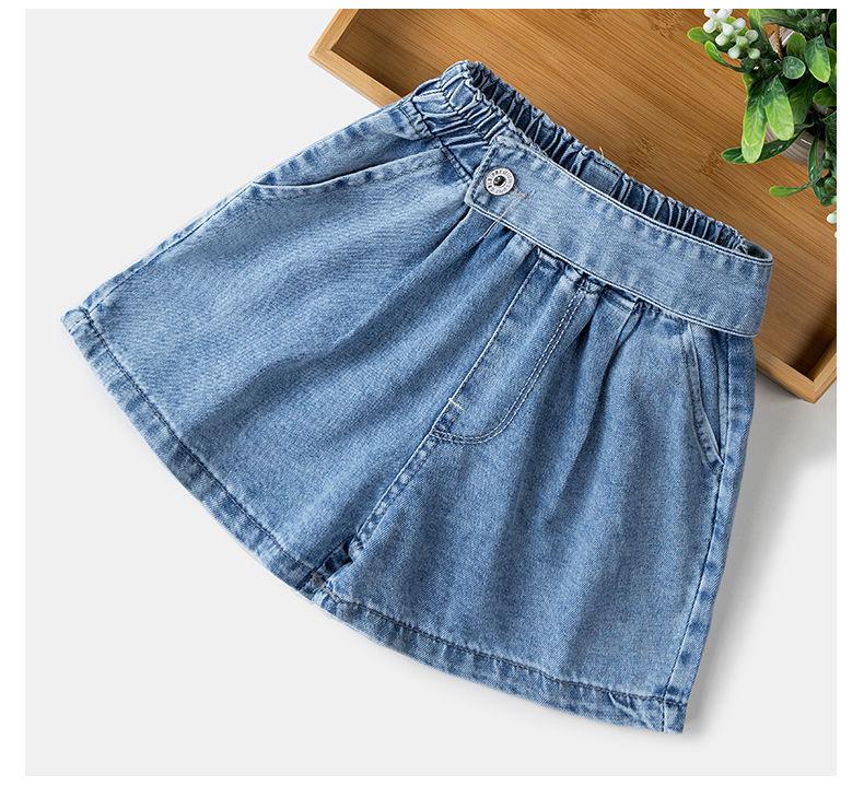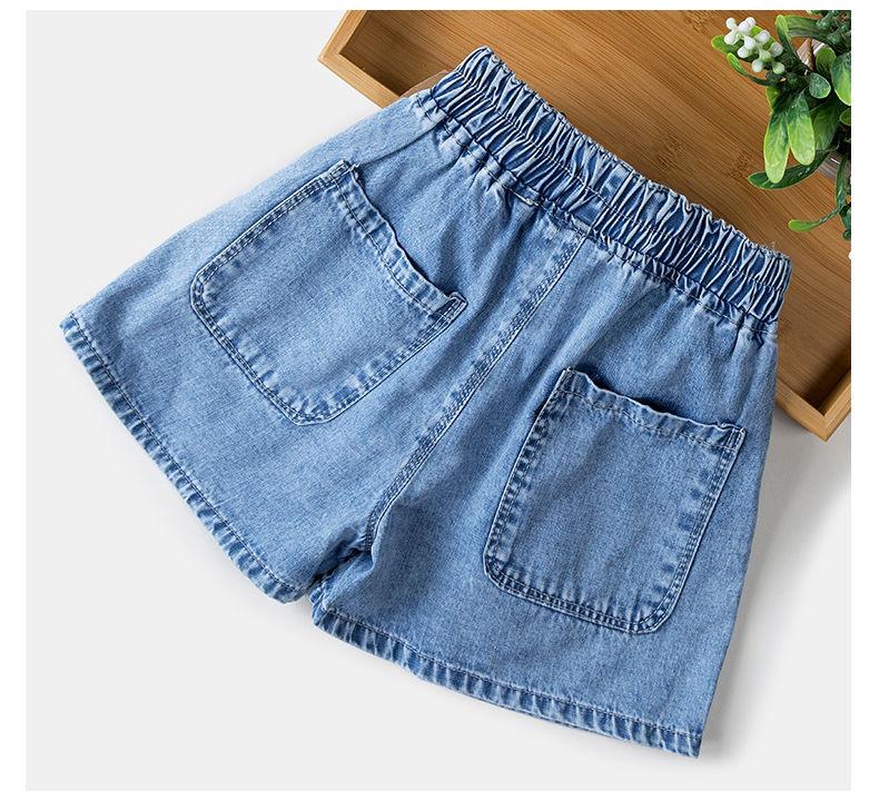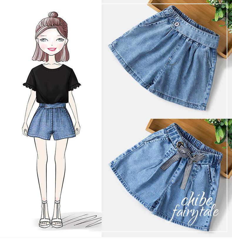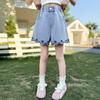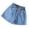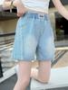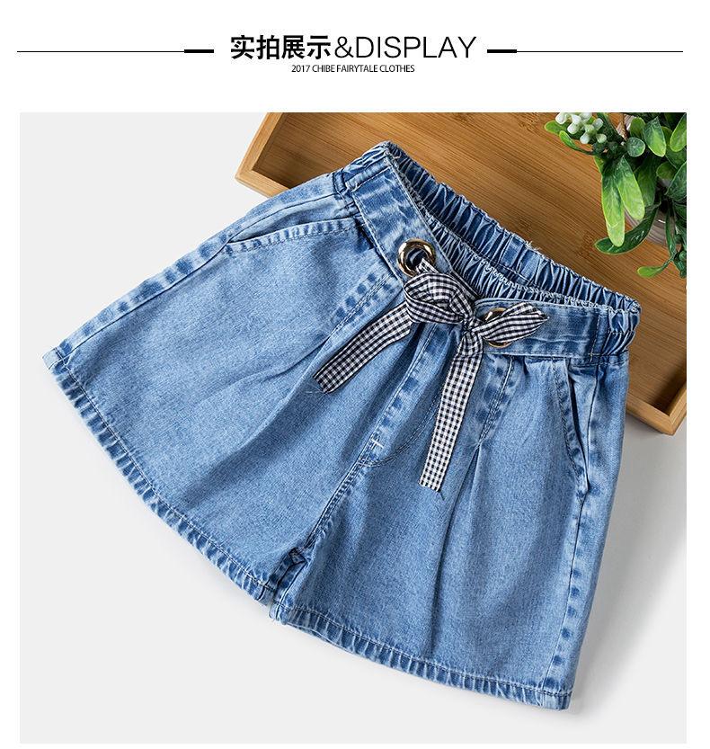 Novo 2025 Shorts Jeans Cadarço Cor Pura Estilo Coreano Meninas Hot Pants Casuais Infantis Calças Infantis Médias e Grandes