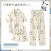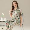 Pijama de seda estilo coreano transfronteiriço feminino primavera e outono, calças de manga curta, seda floral, moda para casa, roupas para terno