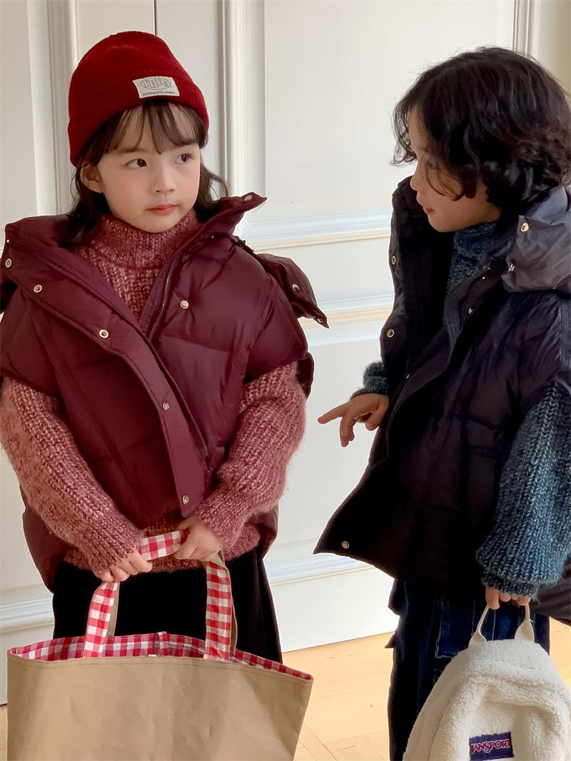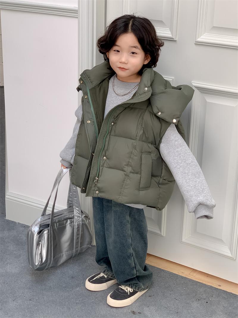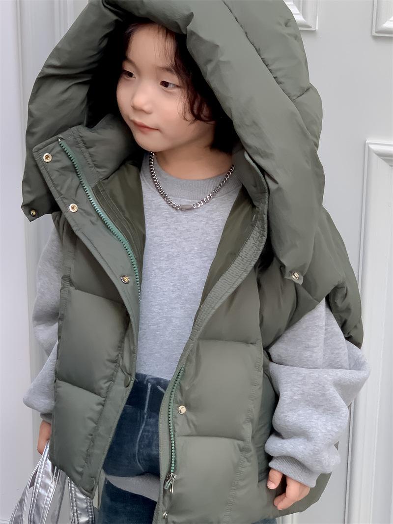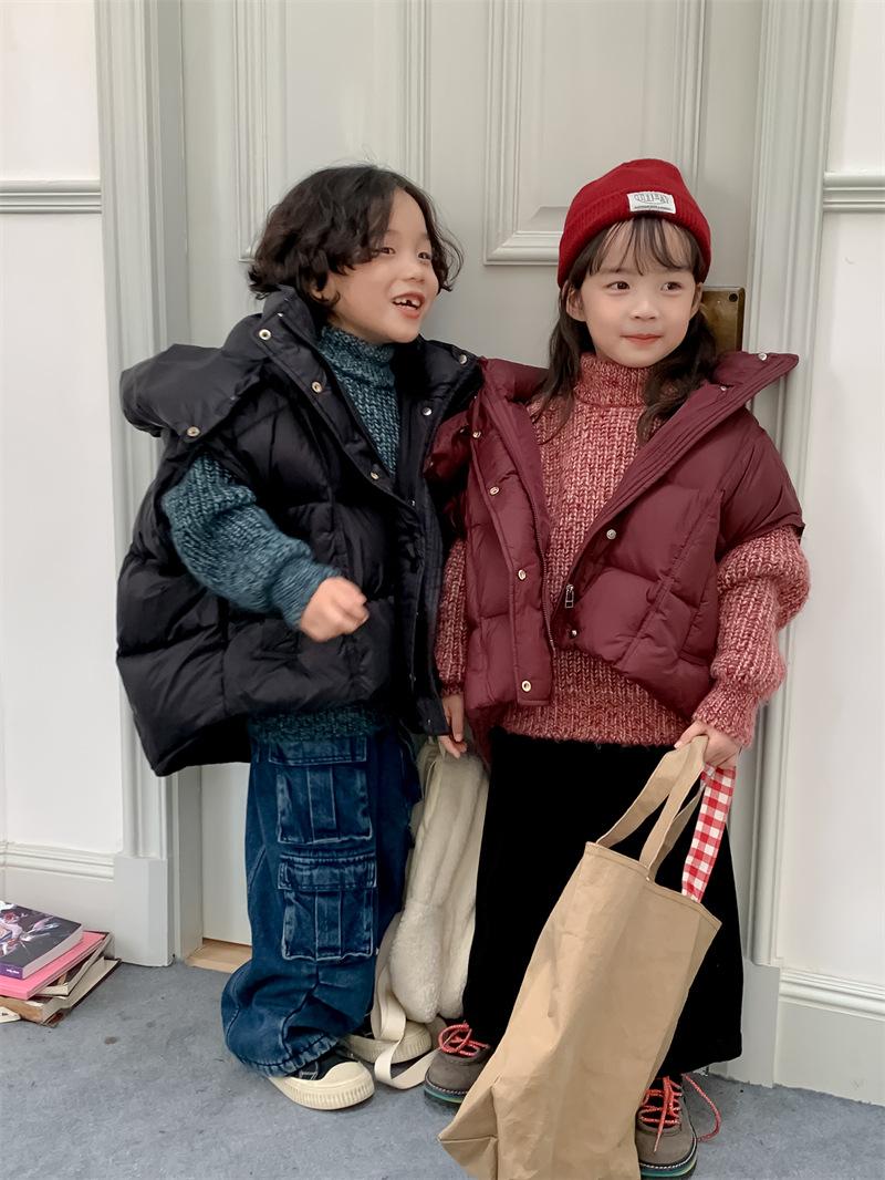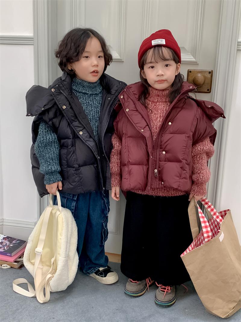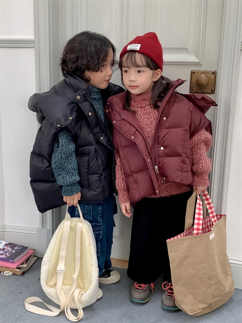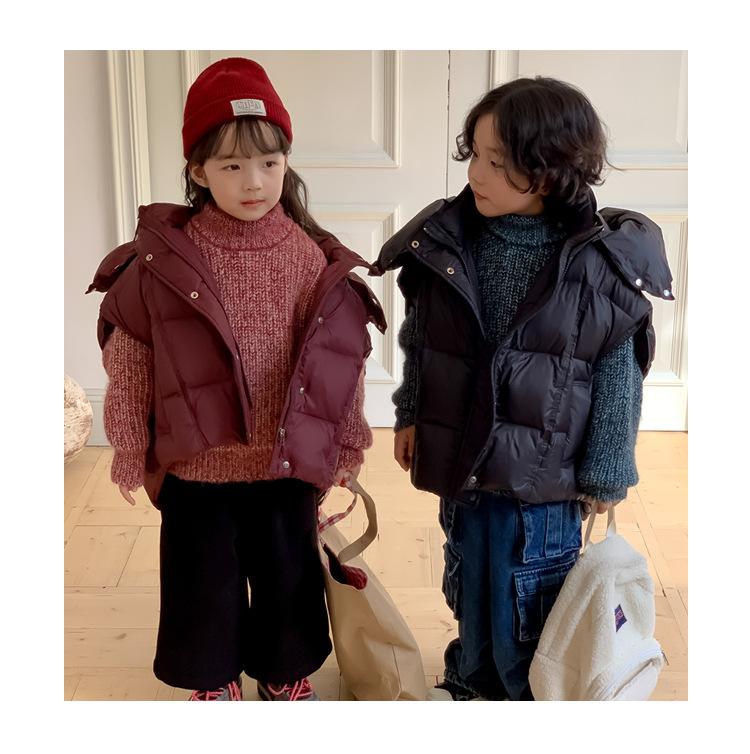 Estilo coreano meninos e meninas jaqueta para baixo 2023 inverno novo pato branco das crianças para baixo colete bebê capuz casaco de pão