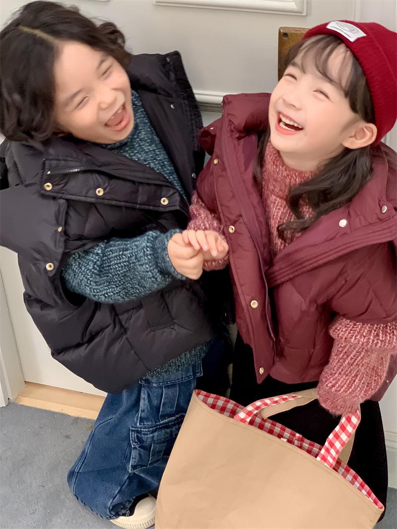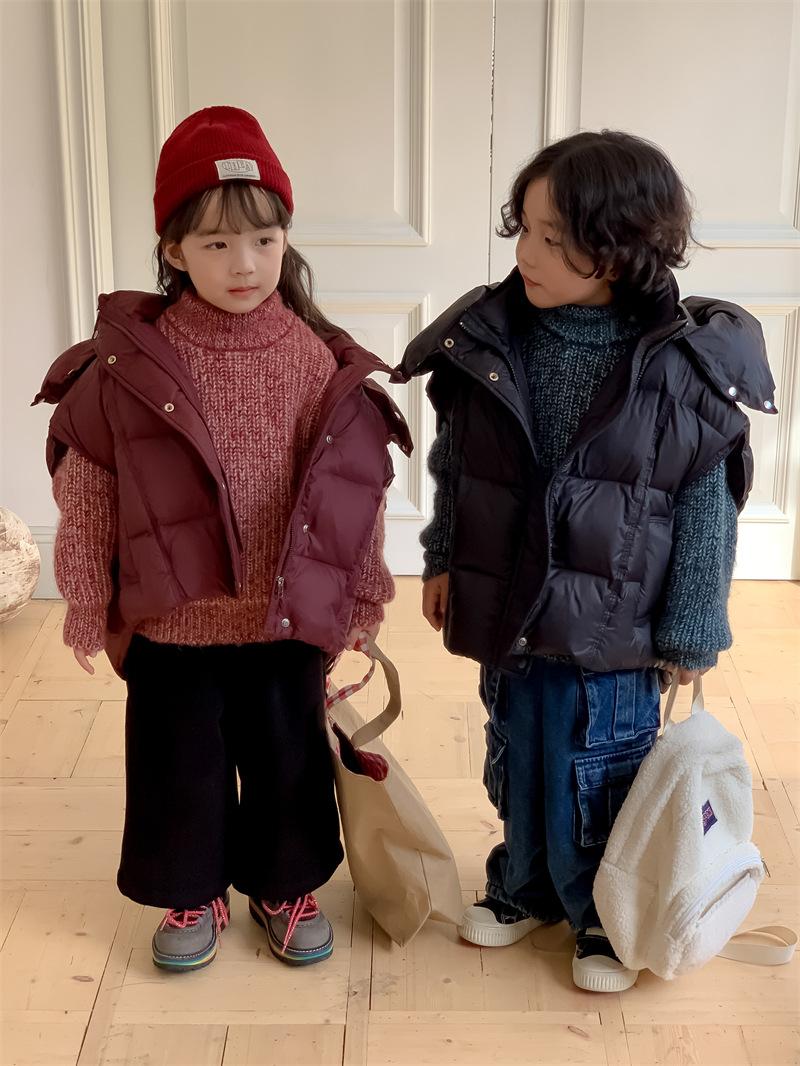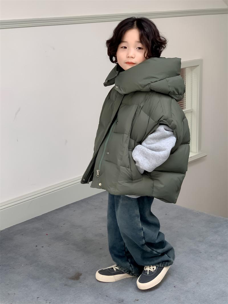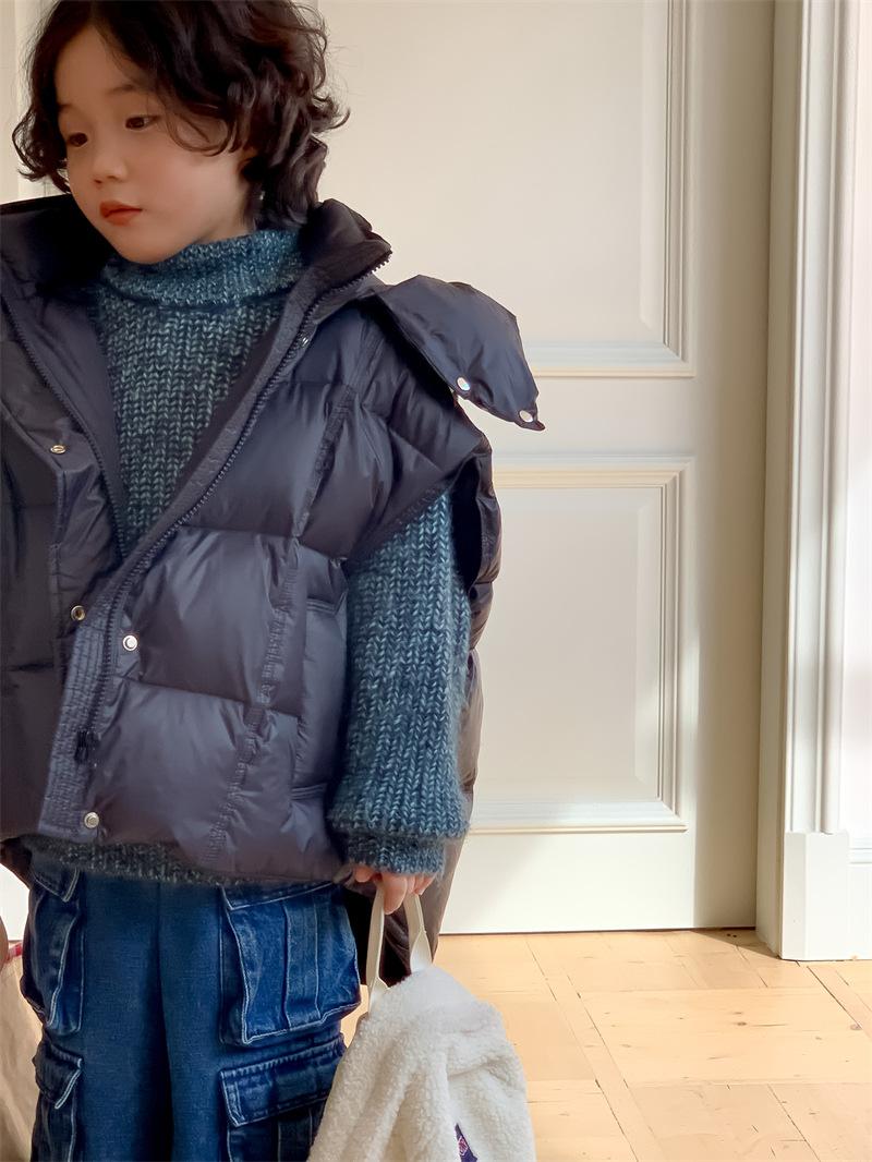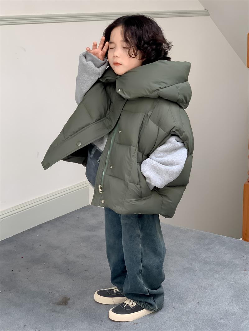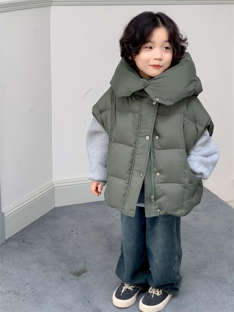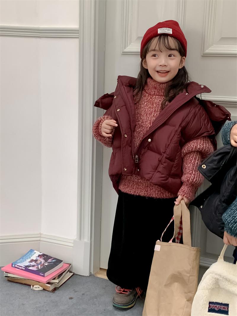 Estilo coreano meninos e meninas jaqueta para baixo 2023 inverno novo pato branco das crianças para baixo colete bebê capuz casaco de pão