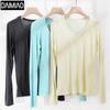 Conjunto de roupas íntimas térmicas sem costura feminina veludo Pescoço da tripulação alemã roupas de outono e calças dupla face base de lixamento suéter de algodão slim-fit
