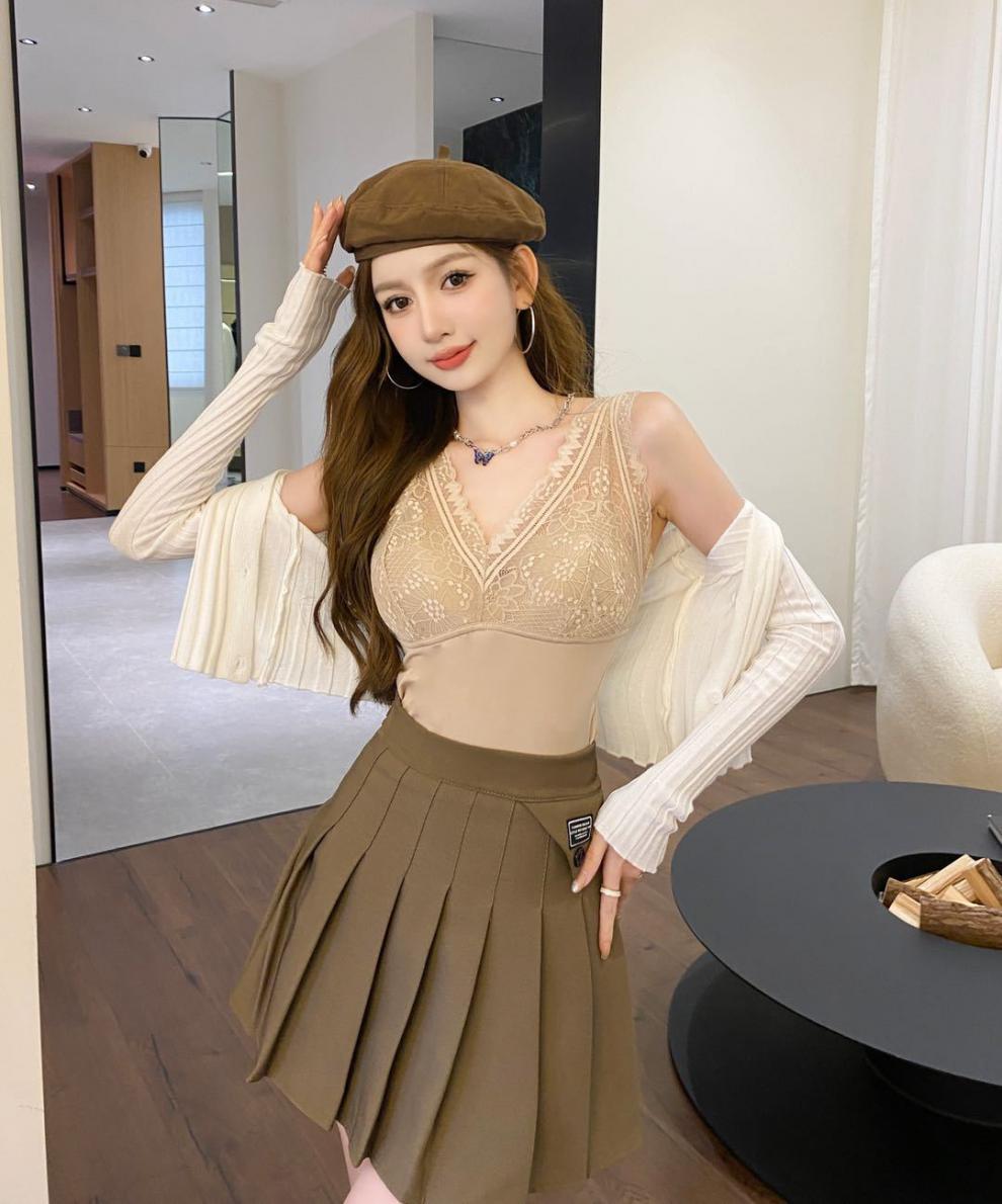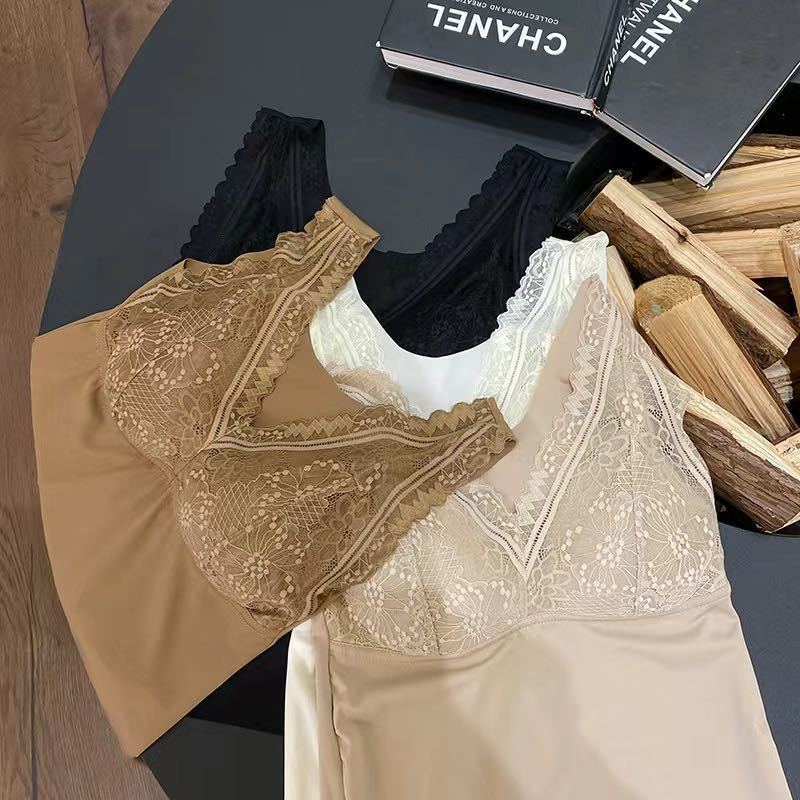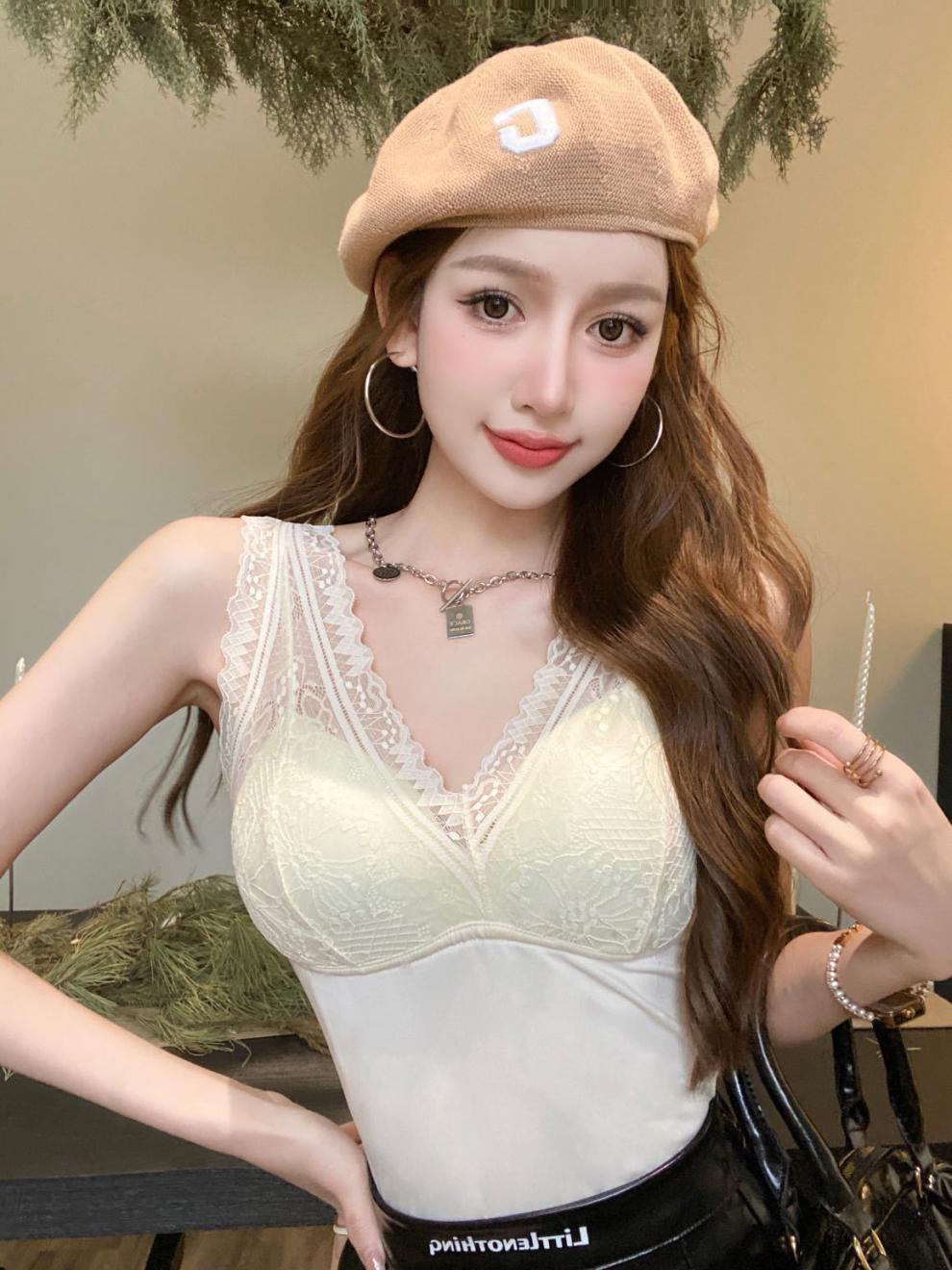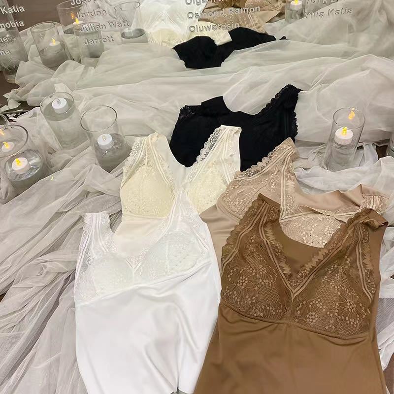 Novo estilo francês longo laço alça de ombro larga sutiã camisola de uma peça beleza de volta cueca exterior desgaste top
