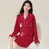 Vestido de noite feminino primavera e outono algodão fino de comprimento médio longo manga vestido cartoon casual cardigan para uso doméstico