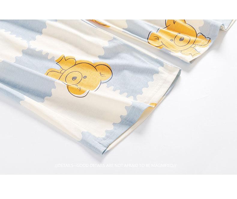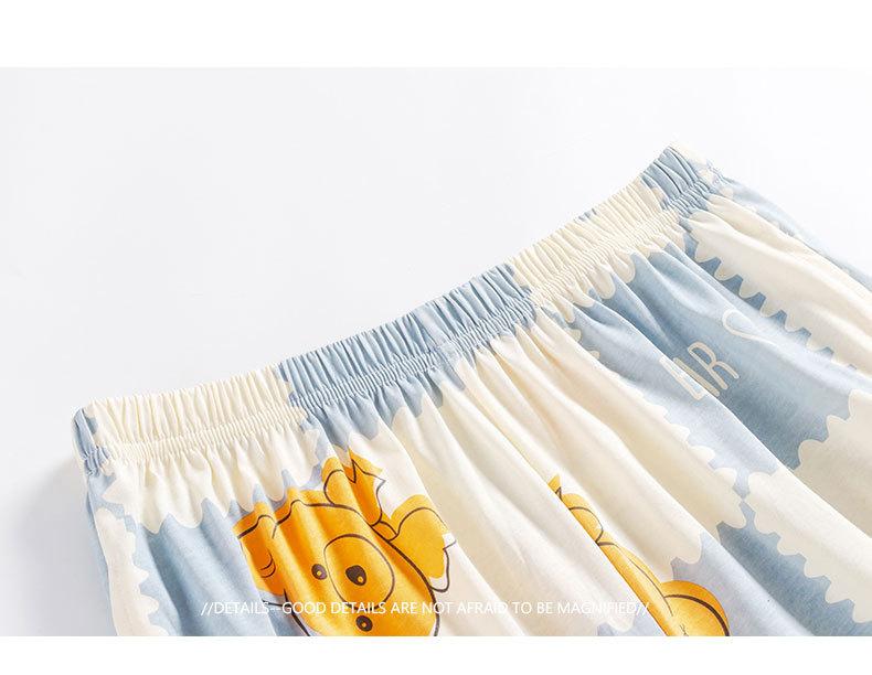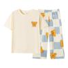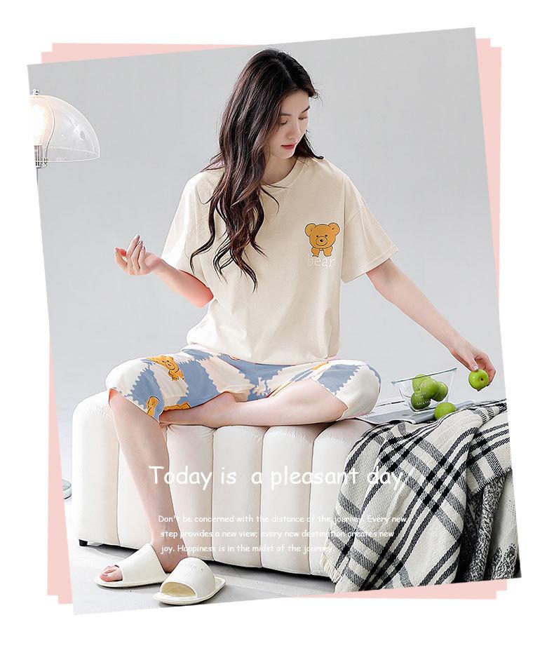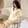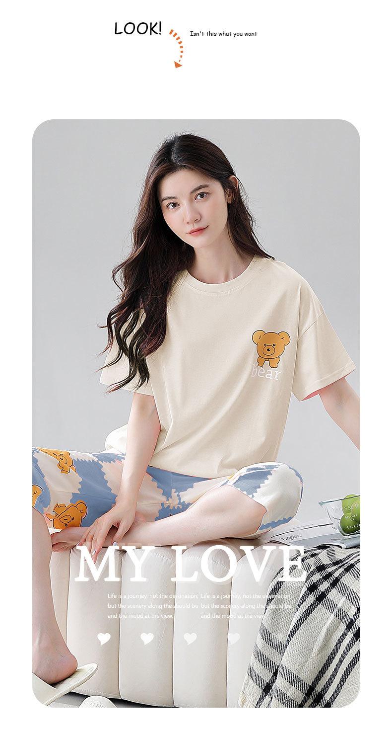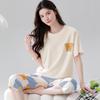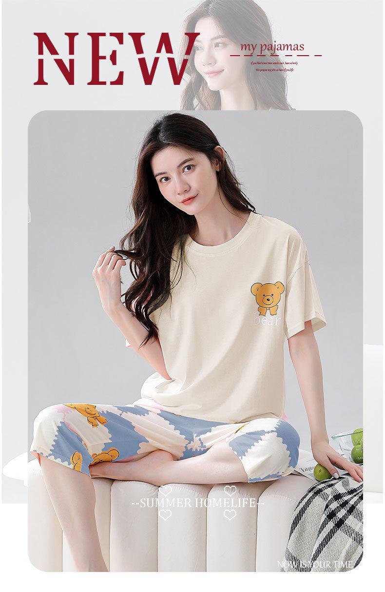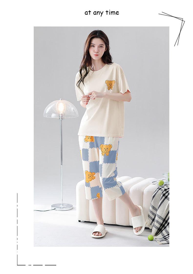 Pijamas de algodão das mulheres verão manga curta calça cropped terno de duas peças cartoon casual fino solto ao ar livre home wear