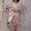 Lingerie Sexy Roupão Kimono Feminino Conjunto Uniforme Tentação Estampa Bordado Laço Japonês Pijama Japonês Sexy