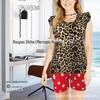 Pijamas femininos de três peças 2023 novo gelo seda lapela cardigan leopardo jacquard simples casual home wear atacado