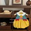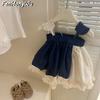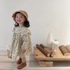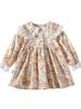 Vestido das Meninas Outono 2024 Novo Vestido Princesa Infantil Estilo Ocidental Lapela Floral Manga Longa Bebê Trendy
