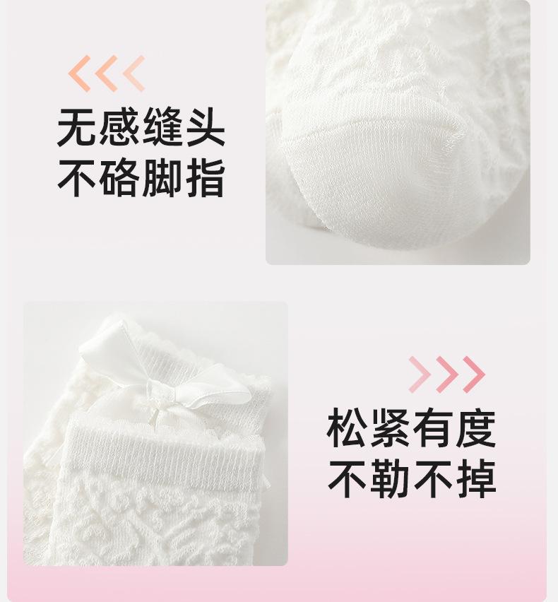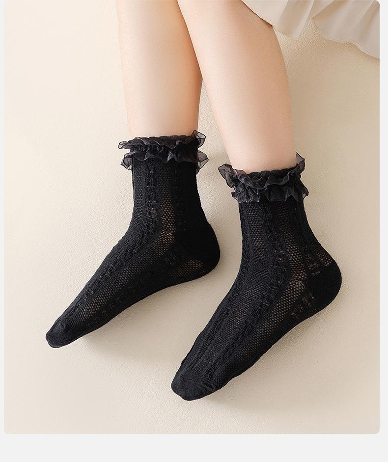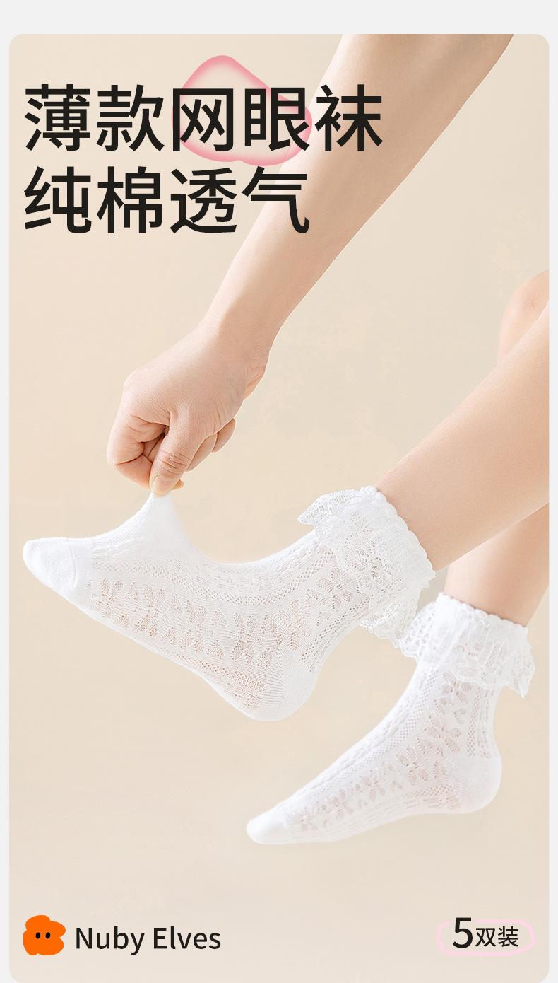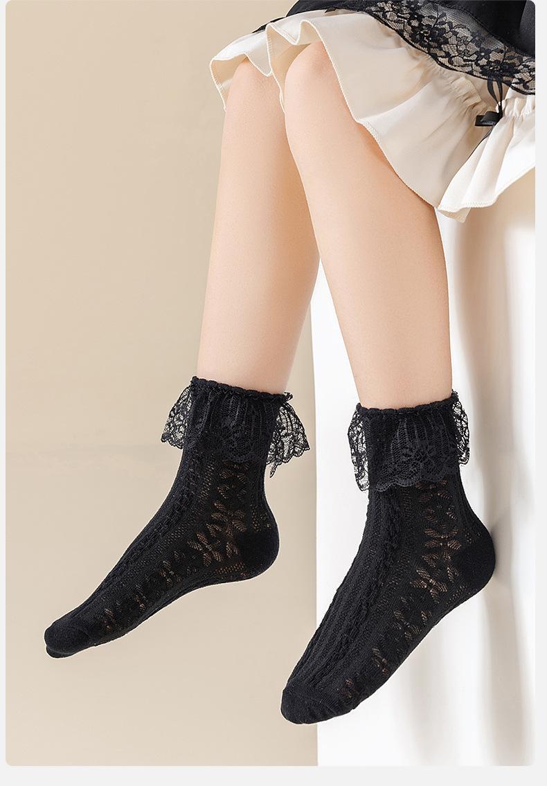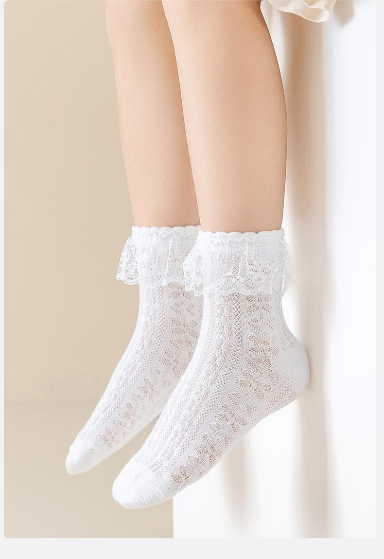 Meias Infantis Finas Lolita Meias de Renda Princesa Meias de Algodão Meias de Verão de Meia Panturrilha para Meninas Respiráveis e Absorventes de Suor