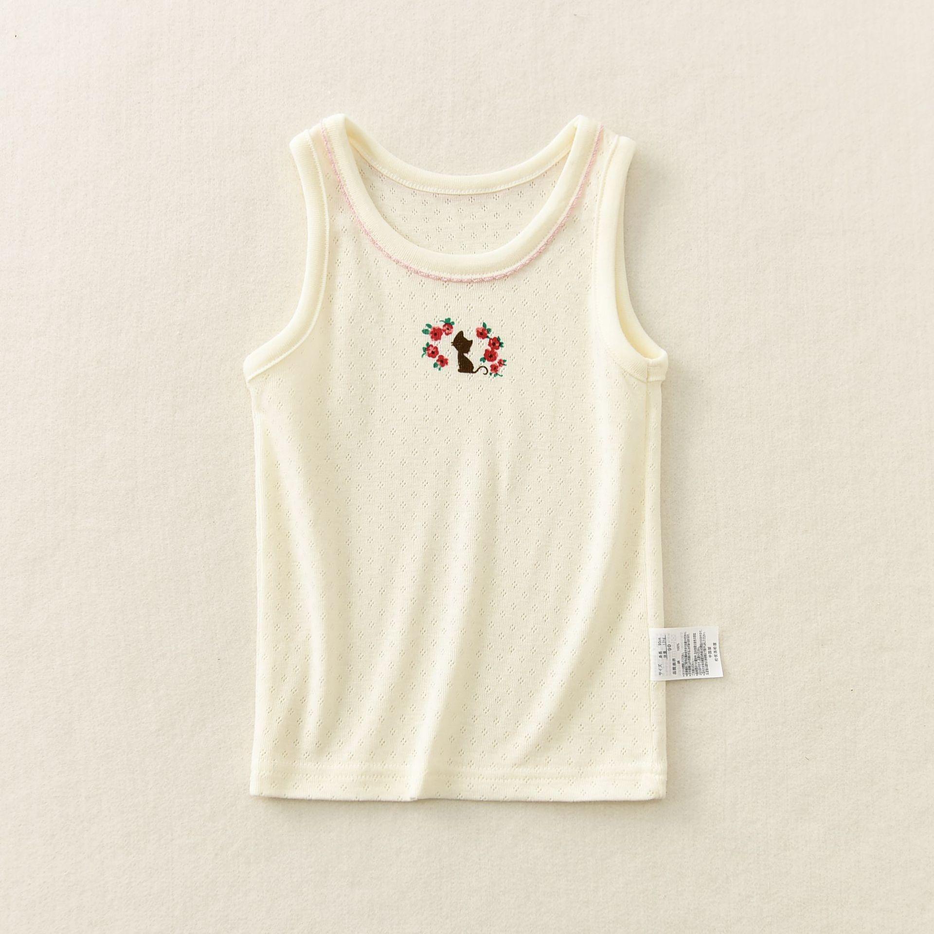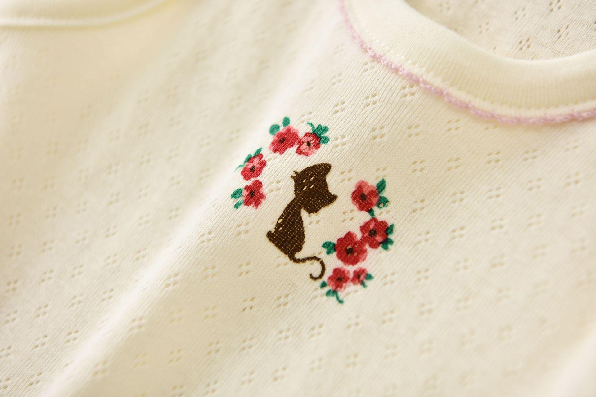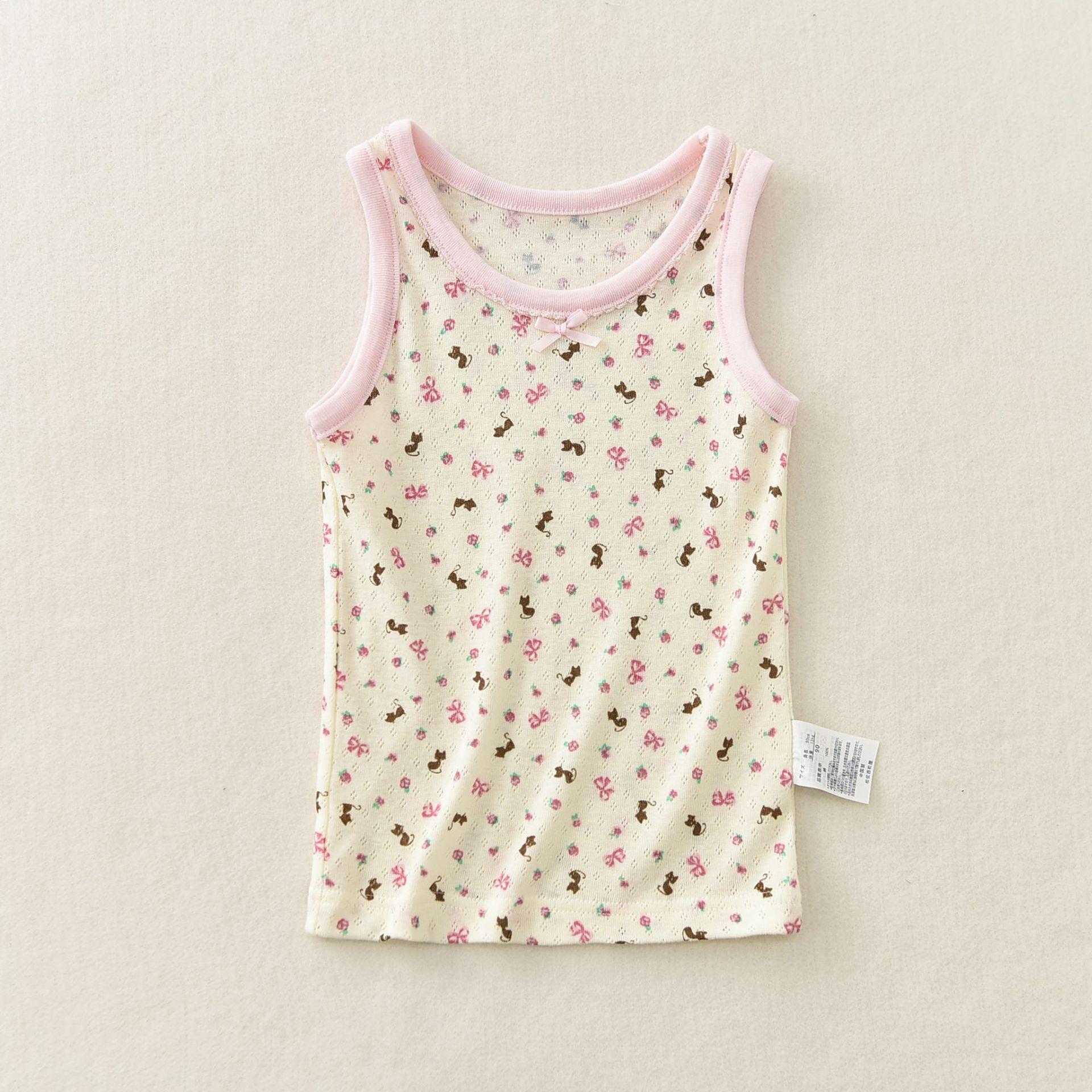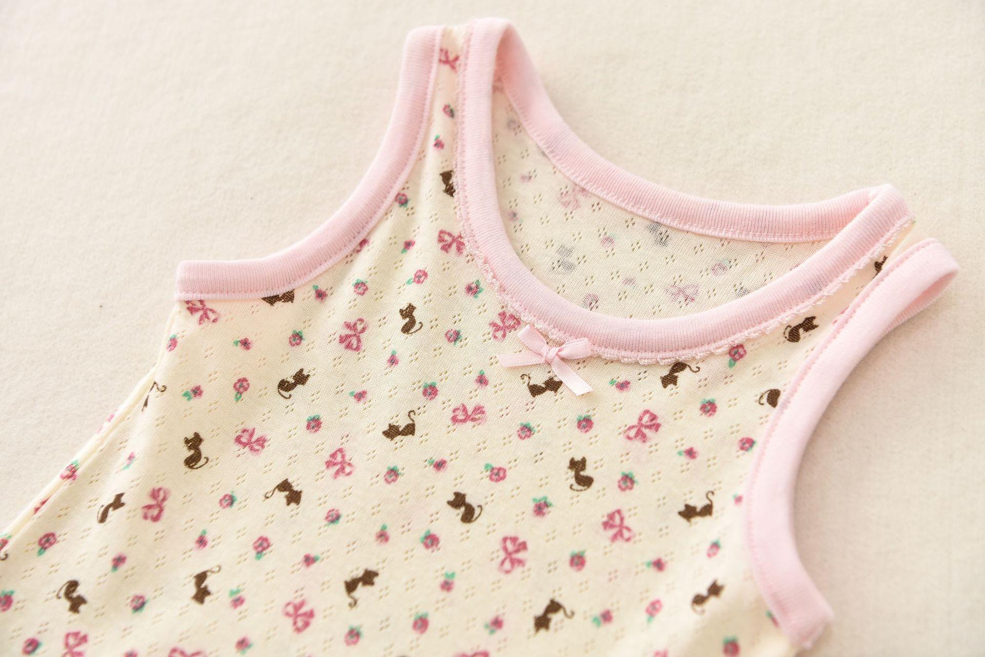 Songyou Xisongwu Novo Colete Infantil Japonês de Exportação para Meninas, Malha Rosa, Gato, Roupa Infantil, Algodão Puro, Verão, Combinação Completa, Estudante