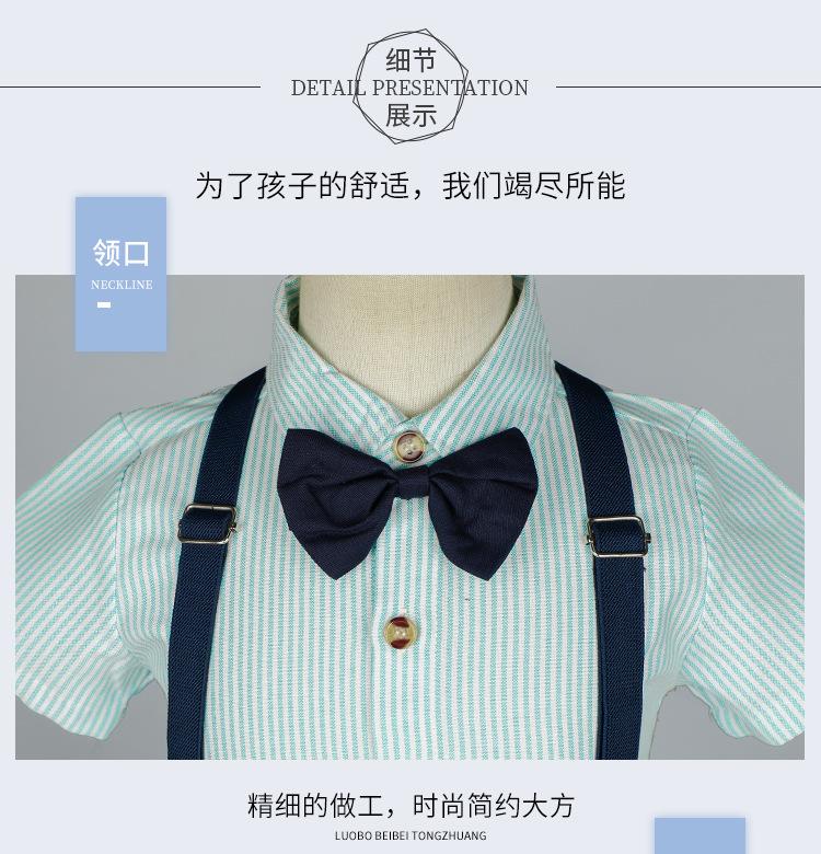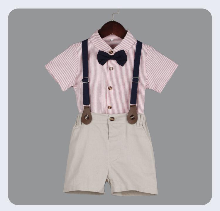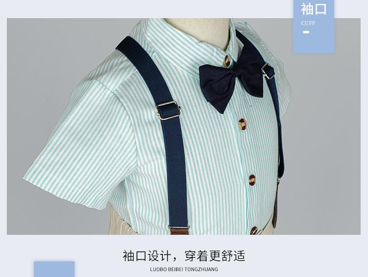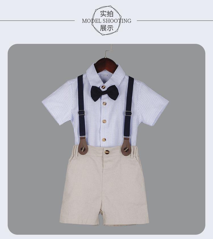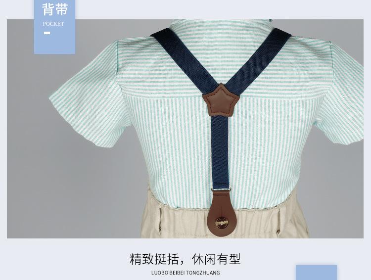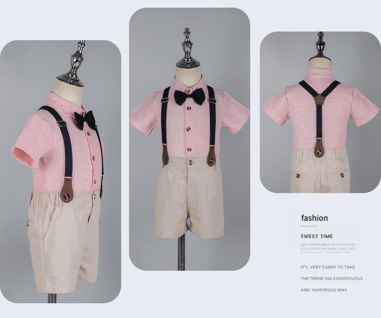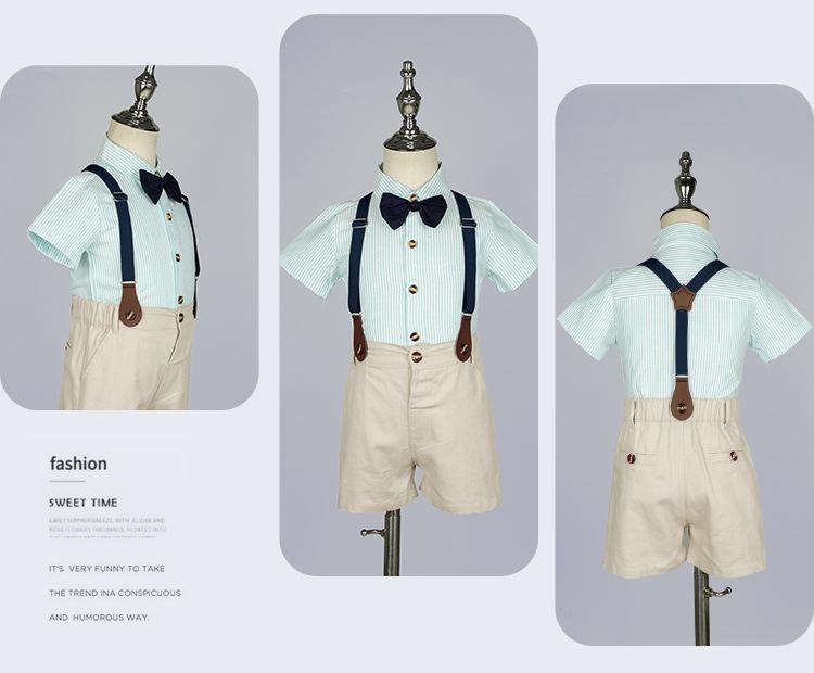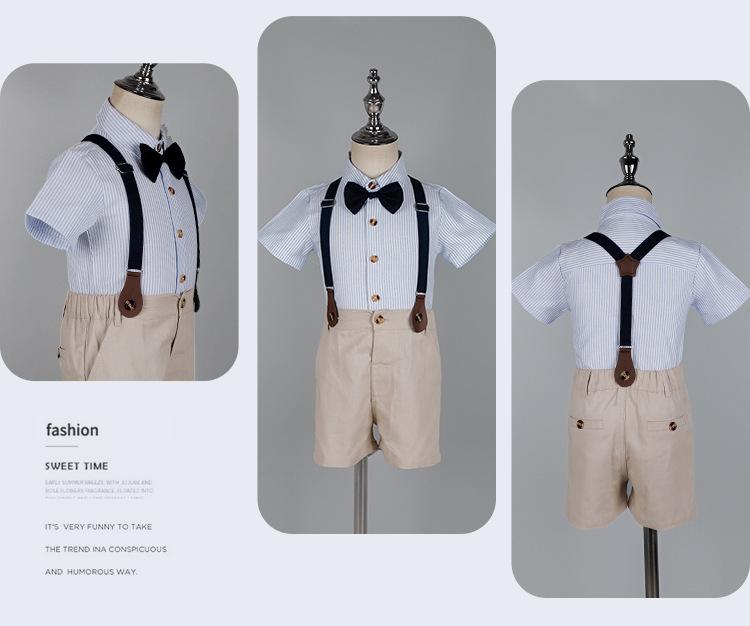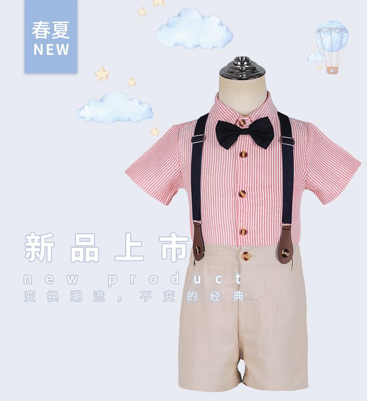 Terno dos meninos Verão Novo Bonito Camisa de manga curta Suspensórios Duas peças Jardim de Infância Vestido de Formatura Vestido de Desempenho