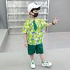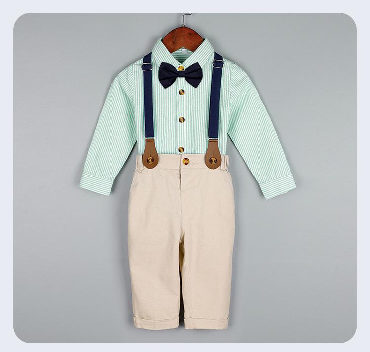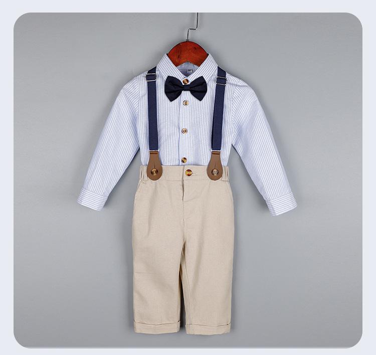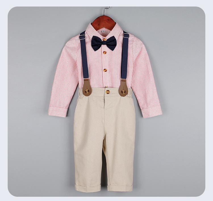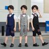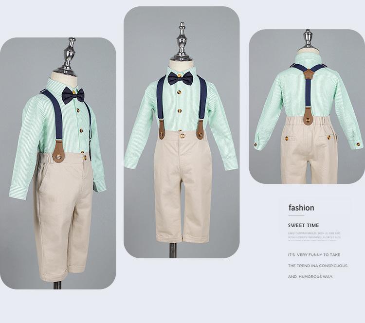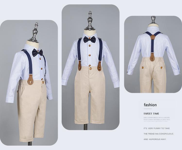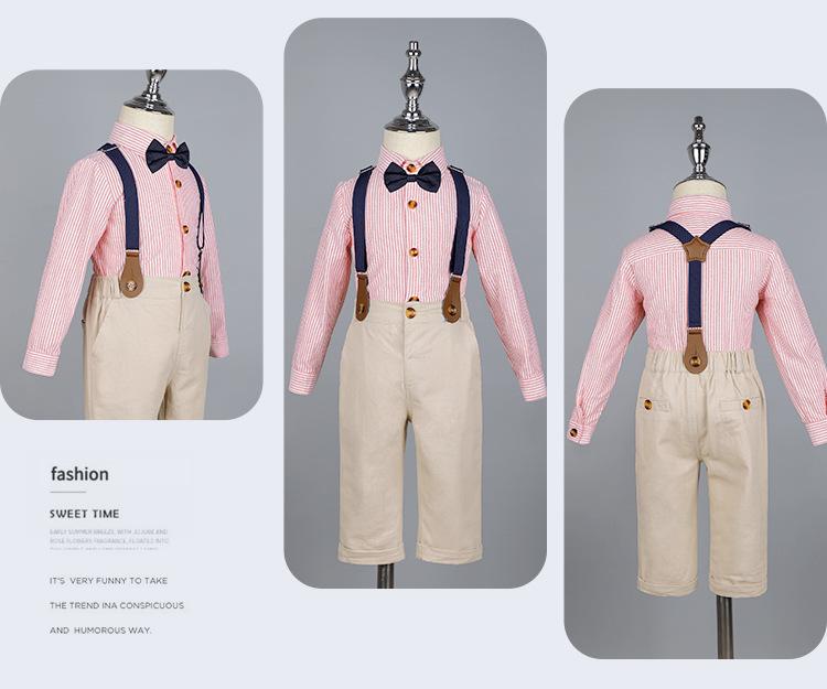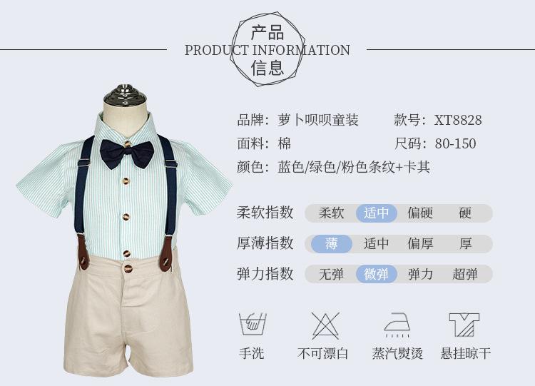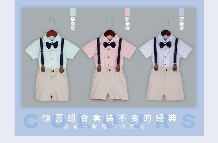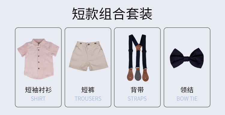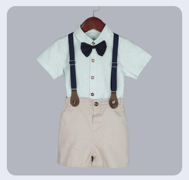 Terno dos meninos Verão Novo Bonito Camisa de manga curta Suspensórios Duas peças Jardim de Infância Vestido de Formatura Vestido de Desempenho