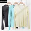 Roupa íntima térmica de algodão e seda de inverno, camiseta feminina fina de manga comprida e alta elasticidade, roupas de outono