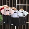 2023 novo terno de manga curta para meninos roupas de verão para crianças com alça de terno pequeno conjunto de duas peças fábrica atacado moda
